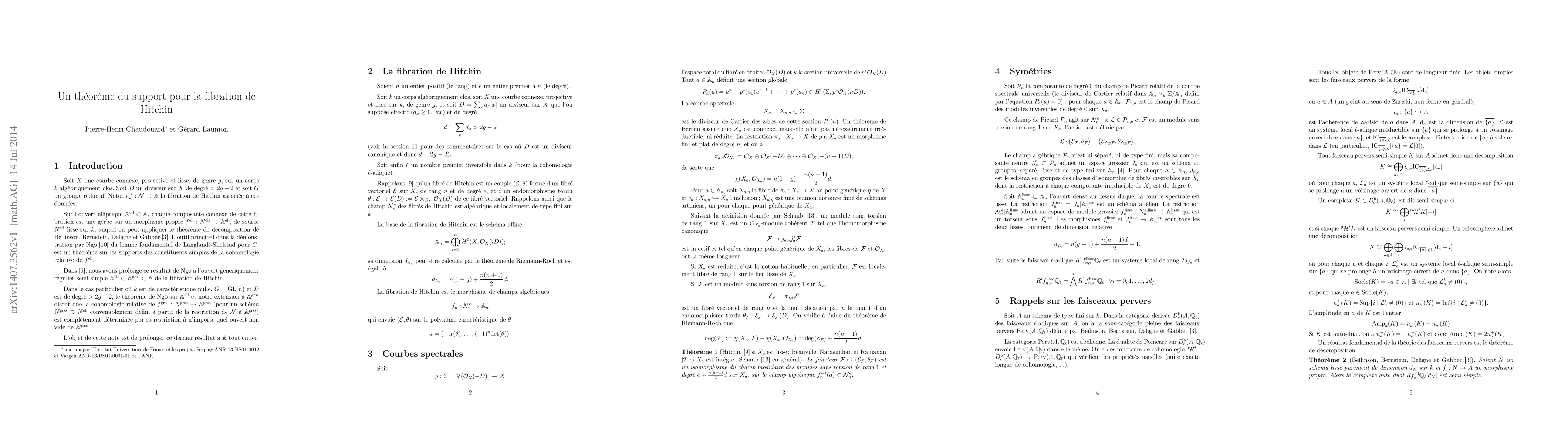 The main tool in Ng\^o Bao Ch\^au's proof of the Langlands-Shelstad fundamental lemma, is a theorem on the support of the relative cohomology of the elliptic part of the Hitchin fibration. For GL(n) and a divisor of degree >2g-2, the theorem says that the relative cohomology is completely determined by its restriction to any dense open subset of the base of the Hitchin fibration. In this note we would like to present in this particular case, our extension of that theorem to the whole Hitchin fibration, including the global nilpotent cone.
