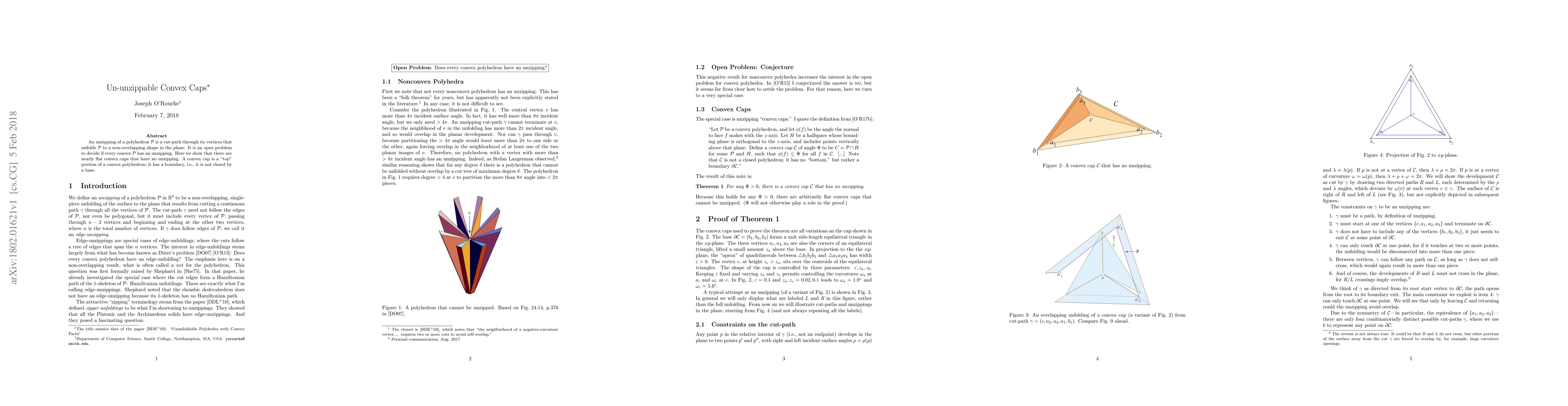 This paper demonstrates that certain nearly flat convex caps, which are the top portions of convex polyhedra, do not possess an unzipping path that unfolds them into a non-overlapping shape in the plane. This finding challenges the conjecture that every convex polyhedron has an unzipping.