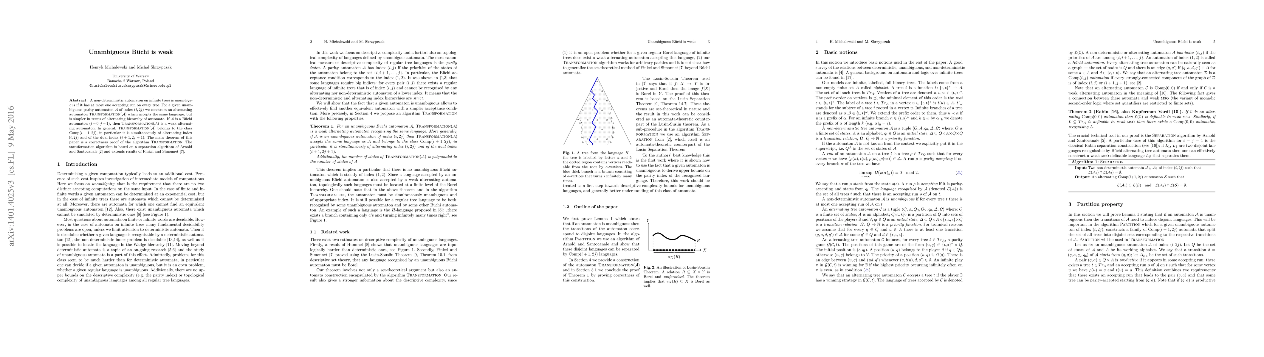 This paper demonstrates that an unambiguous Buchi tree automaton with priorities between 1 and 2n recognizes a language that can be defined by a weak alternating automaton, thus collapsing the complexity class. The result extends to show that any unambiguous Buchi automaton recognizes a language definable in weak MSO.