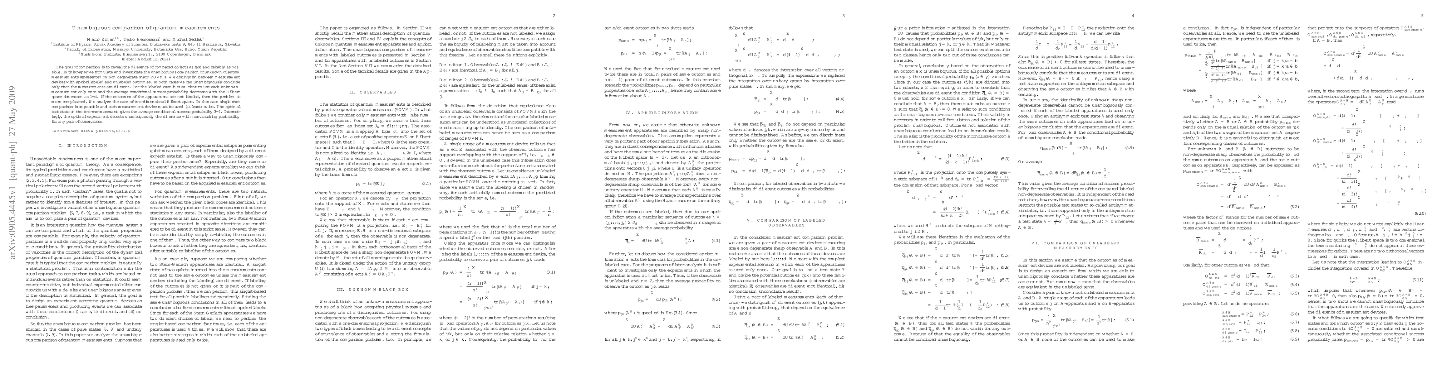 This paper investigates the unambiguous comparison of unknown quantum measurements using non-degenerate sharp POVMs. For labeled measurements, a single use suffices, with success probability decreasing as 1/d. For unlabeled measurements, especially in two-dimensional spaces, at least two uses are required, achieving a 3/4 success probability.
