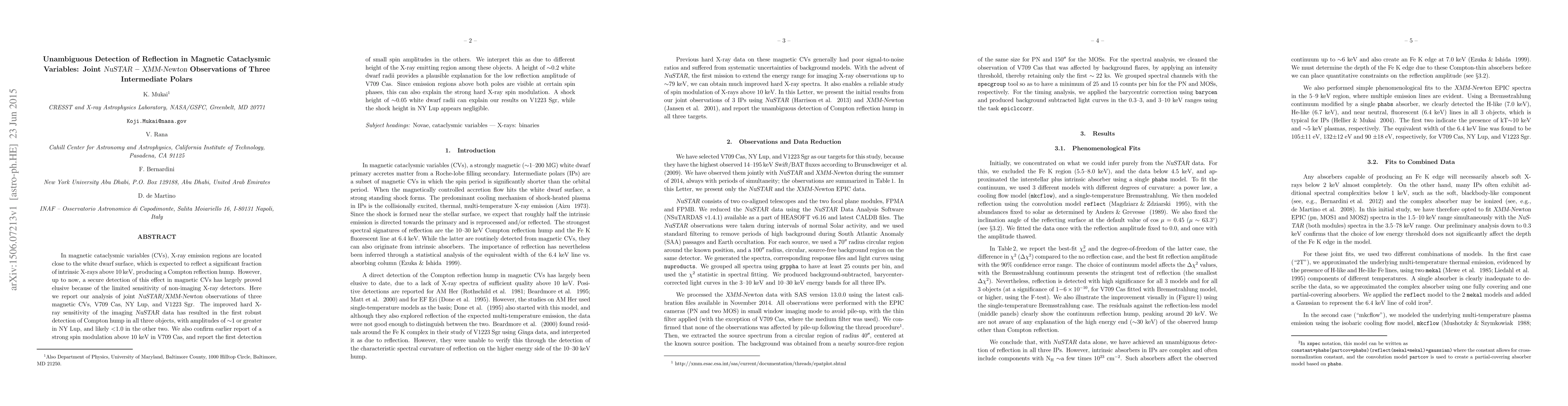 This study reports the first unambiguous detection of Compton reflection hump in three magnetic cataclysmic variables (V709 Cas, NY Lup, and V1223 Sgr) using joint NuSTAR/XMM-Newton observations, revealing significant differences in the height of X-ray emitting regions and their reflection amplitudes.