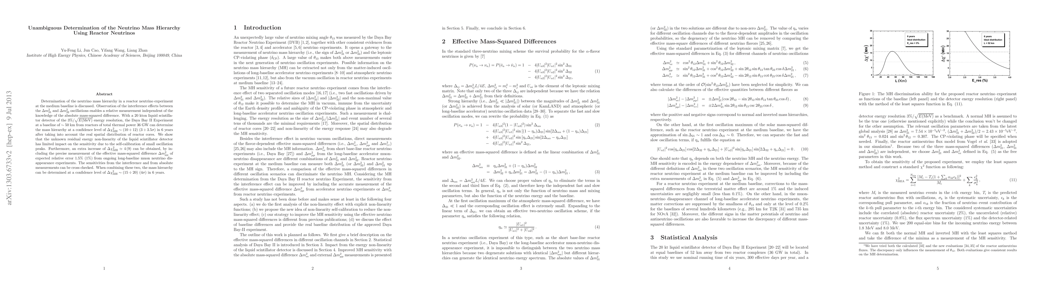 The paper presents a detailed analysis of using reactor neutrino oscillations to determine the neutrino mass hierarchy, incorporating both interference and absolute measurement techniques for improved sensitivity.