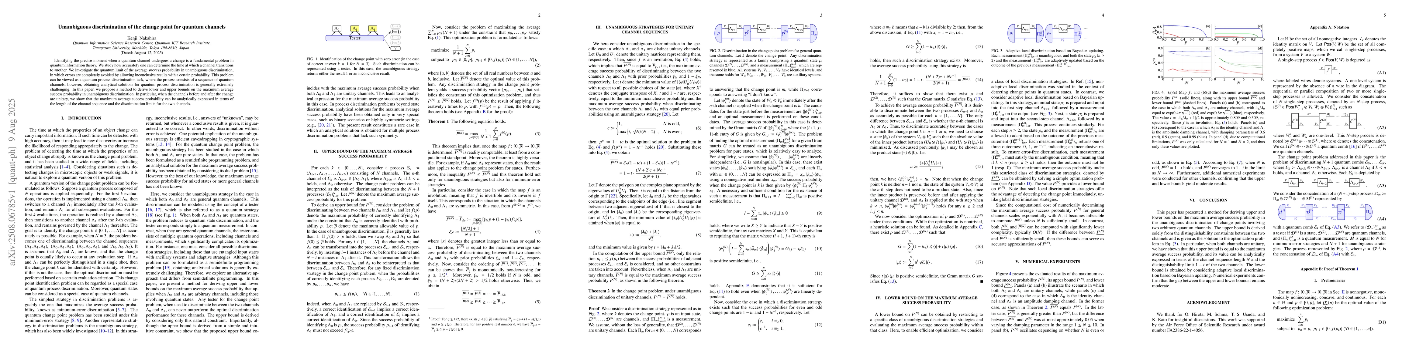 Identifying the precise moment when a quantum channel undergoes a change is a fundamental problem in quantum information theory. We study how accurately one can determine the time at which a channel transitions to another. We investigate the quantum limit of the average success probability in unambiguous discrimination, in which errors are completely avoided by allowing inconclusive results with a certain probability. This problem can be viewed as a quantum process discrimination task, where the process consists of a sequence of quantum channels; however, obtaining analytical solutions for quantum process discrimination is generally extremely challenging. In this paper, we propose a method to derive lower and upper bounds on the maximum average success probability in unambiguous discrimination. In particular, when the channels before and after the change are unitary, we show that the maximum average success probability can be analytically expressed in terms of the length of the channel sequence and the discrimination limits for the two channels.