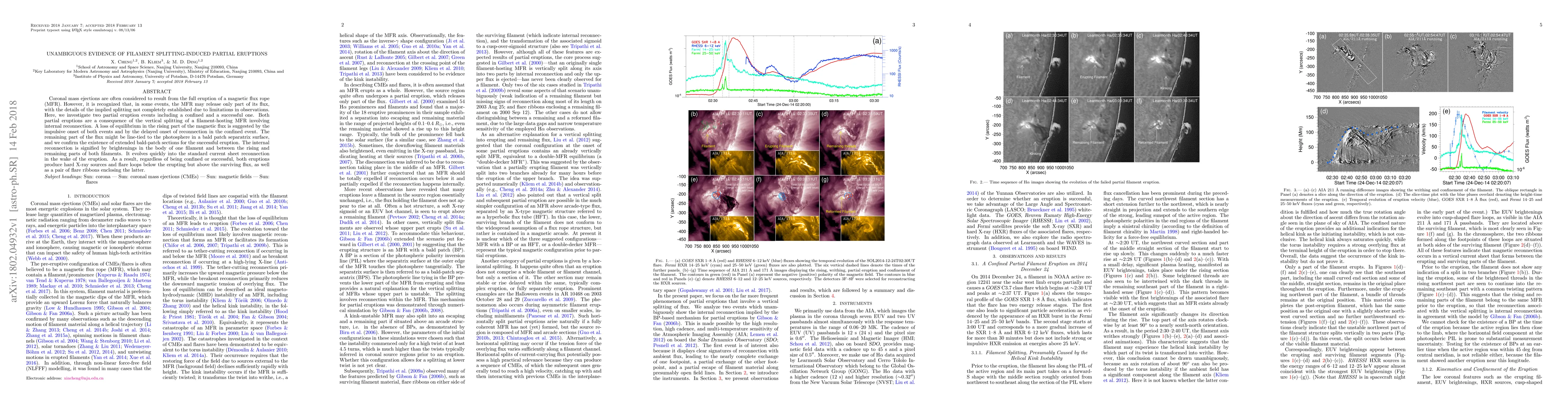 This study reveals evidence of partial eruptions in coronal mass ejections caused by the vertical splitting of filament-hosting magnetic flux ropes, involving internal reconnection. Both observed partial eruptions, one confined and one successful, resulted in hard X-ray sources, flare loops, and ribbons, indicating the importance of filament splitting in solar activity.