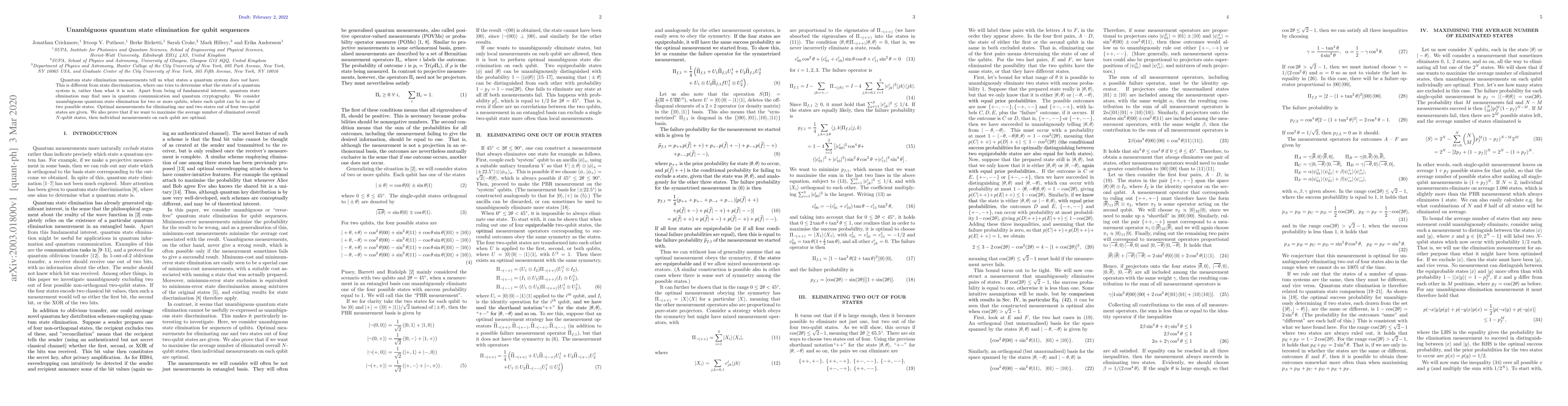 The paper optimizes measurements for eliminating states in qubit sequences to maximize average eliminated states for N-qubits, finding individual qubit measurements optimal for this purpose.