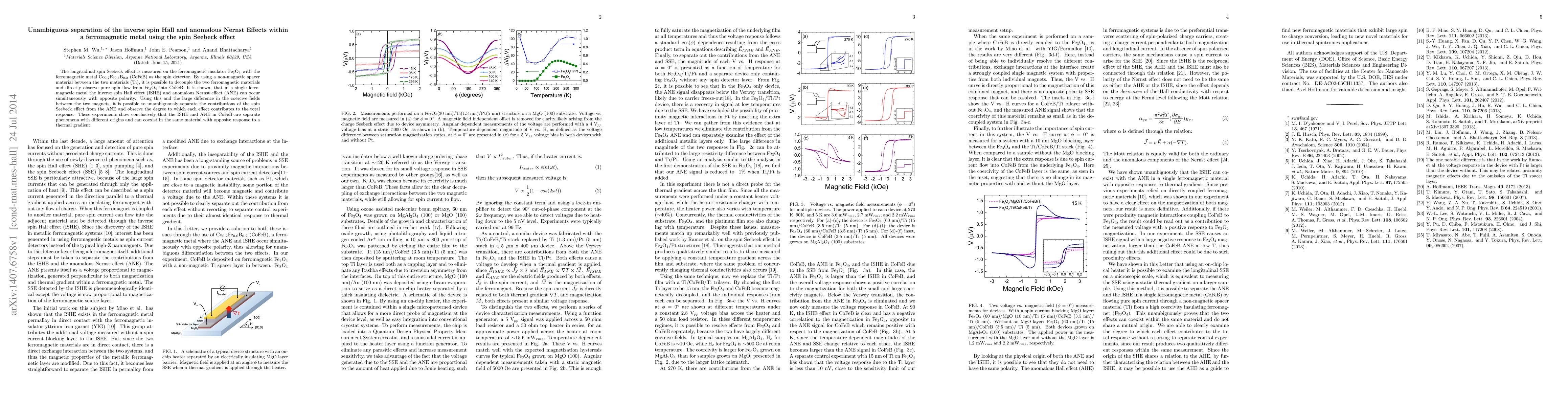 This research demonstrates the unambiguous separation of the inverse spin Hall effect (ISHE) and anomalous Nernst effect (ANE) in a ferromagnetic metal by utilizing the spin Seebeck effect. Experiments on Fe$_3$O$_4$ and CoFeB with a Ti spacer reveal that these effects can coexist with opposite polarities, allowing distinct contributions to be isolated based on coercive field differences.