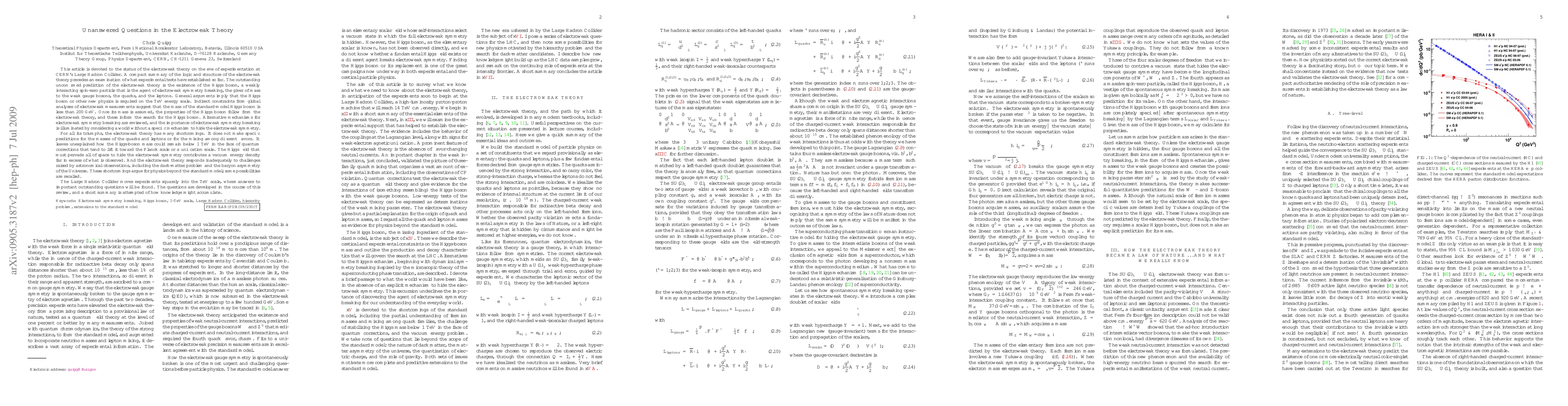 The paper discusses the electroweak theory's current state ahead of LHC experiments, emphasizing the unconfirmed prediction of the Higgs boson's existence. It suggests the Higgs boson's mass is below 200 GeV and reviews alternative symmetry-breaking mechanisms, while highlighting the theory's shortcomings despite its successes.