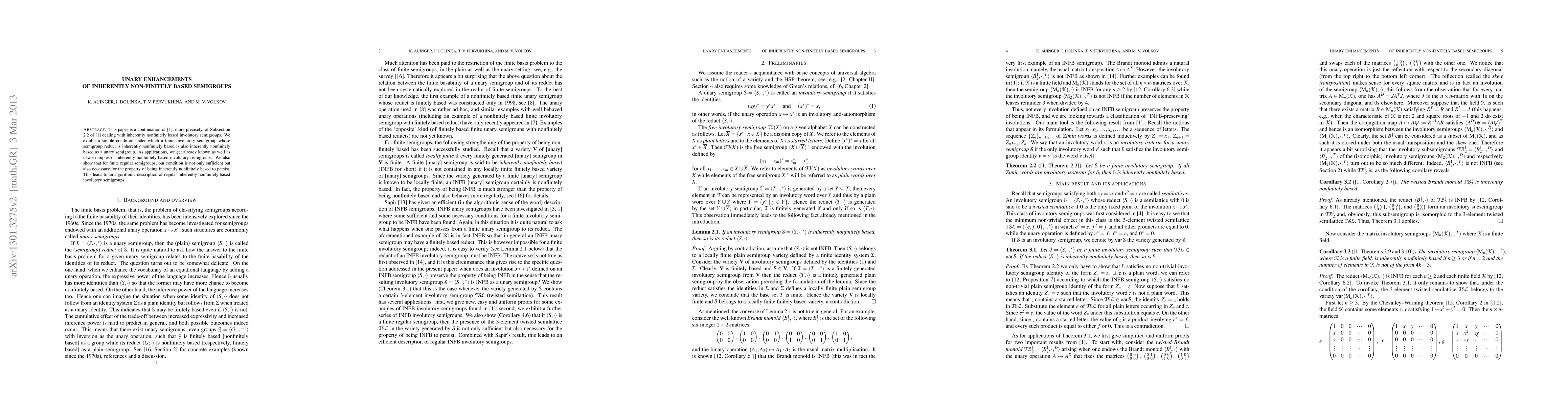 This paper establishes a condition ensuring that a finite involutary semigroup, inherently nonfinitely based as a semigroup, remains inherently nonfinitely based when viewed as a unary semigroup. It also demonstrates the sufficiency and necessity of this condition for finite regular semigroups, resulting in an algorithm for identifying such semigroups.
