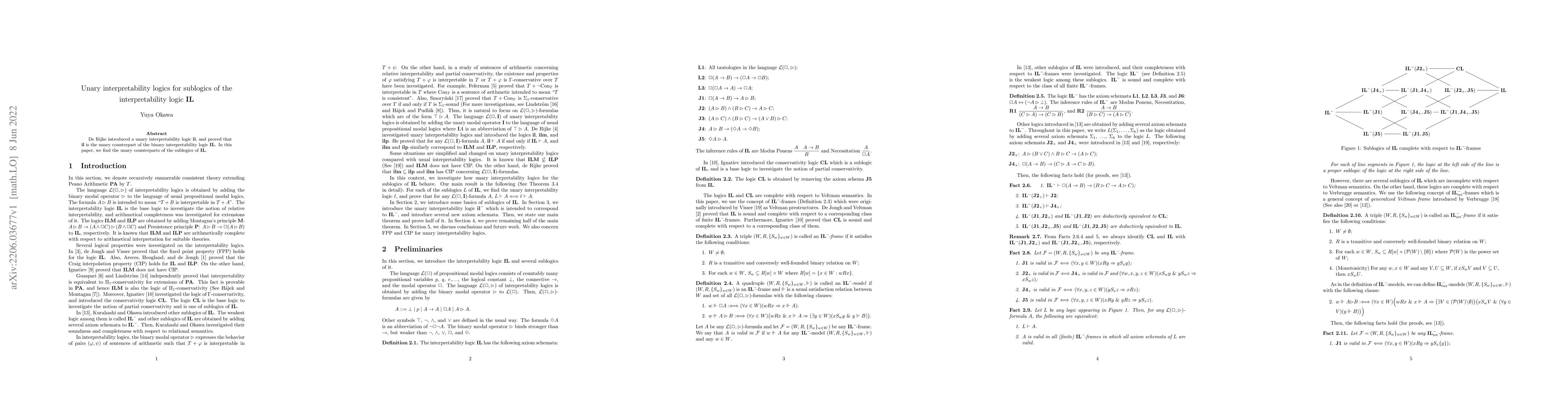 This paper finds the unary counterparts of sublogics of interpretability logic IL, building on De Rijke's introduction of a unary counterpart logic il for IL. The research aims to expand our understanding of interpretability logics.