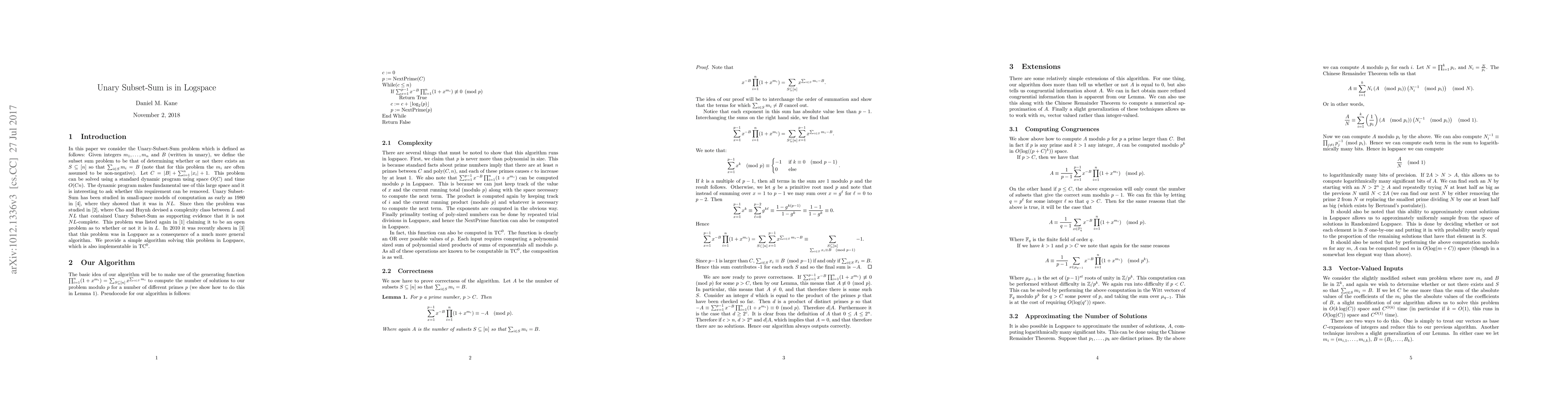 Summary: This paper introduces a straightforward logspace algorithm to solve the Unary Subset-Sum problem, demonstrating efficient computational resource usage. The simplicity of the approach highlights its potential for practical applications in computational theory.