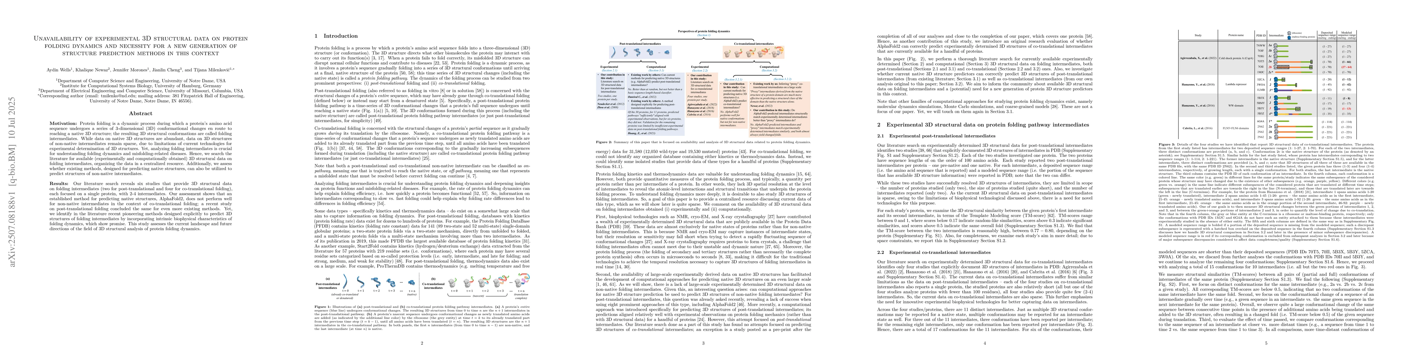 Motivation: Protein folding is a dynamic process during which a protein's amino acid sequence undergoes a series of 3-dimensional (3D) conformational changes en route to reaching a native 3D structure; the resulting 3D structural conformations are called folding intermediates. While data on native 3D structures are abundant, data on 3D structures of non-native intermediates remain sparse, due to limitations of current technologies for experimental determination of 3D structures. Yet, analyzing folding intermediates is crucial for understanding folding dynamics and misfolding-related diseases. Hence, we search the literature for available (experimentally and computationally obtained) 3D structural data on folding intermediates, organizing the data in a centralized resource. Additionally, we assess whether existing methods, designed for predicting native structures, can also be utilized to predict structures of non-native intermediates. Results: Our literature search reveals six studies that provide 3D structural data on folding intermediates (two for post-translational and four for co-translational folding), each focused on a single protein, with 2-4 intermediates. Our assessment shows that an established method for predicting native structures, AlphaFold2, does not perform well for non-native intermediates in the context of co-translational folding; a recent study on post-translational folding concluded the same for even more existing methods. Yet, we identify in the literature recent pioneering methods designed explicitly to predict 3D structures of folding intermediates by incorporating intrinsic biophysical characteristics of folding dynamics, which show promise. This study assesses the current landscape and future directions of the field of 3D structural analysis of protein folding dynamics.