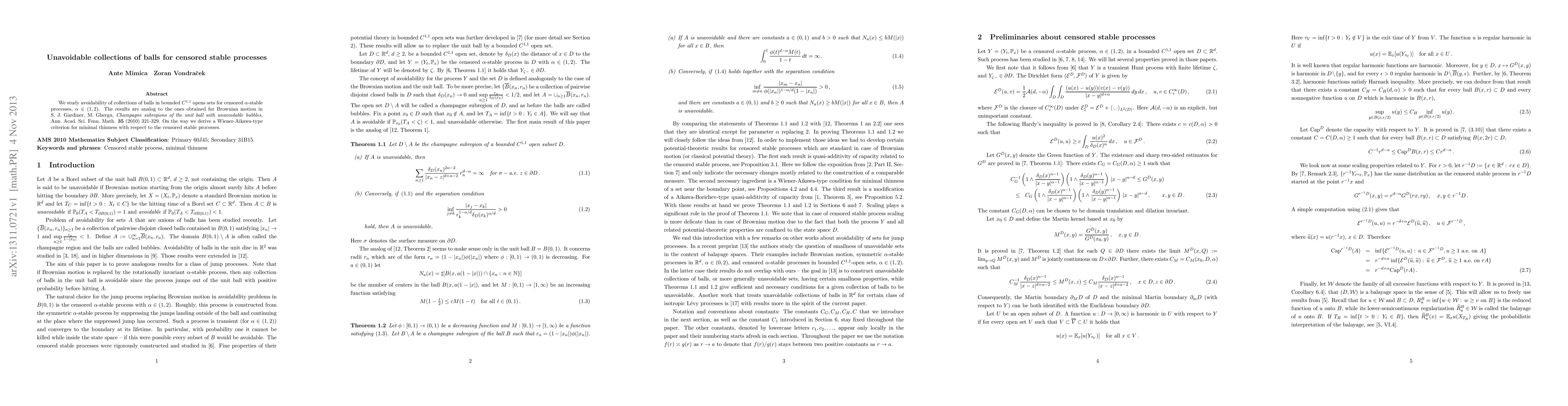 We study avoidability of collections of balls in bounded $C^{1,1}$ opens sets for censored $\alpha$-stable processes, $\alpha\in (1,2)$. The results are analog to the ones obtained for Brownian motion in S. J. Gardiner, M. Ghergu, Champagne subregions of the unit ball with unavoidable bubbles, Ann. Acad. Sci. Fenn. Math. 35 (2010) 321-329. On the way we derive a Wiener-Aikawa-type criterion for minimal thinness with respect to the censored stable processes.