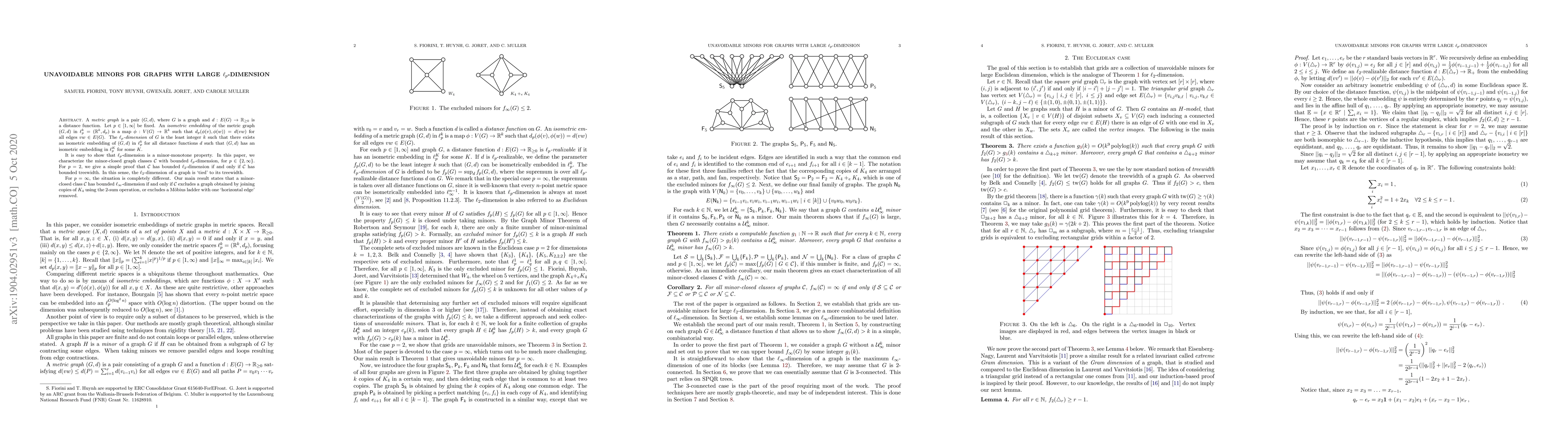 A metric graph is a pair $(G,d)$, where $G$ is a graph and $d:E(G) \to\mathbb{R}_{\geq0}$ is a distance function. Let $p \in [1,\infty]$ be fixed. An isometric embedding of the metric graph $(G,d)$ in $\ell_p^k = (\mathbb{R}^k, d_p)$ is a map $\phi : V(G) \to \mathbb{R}^k$ such that $d_p(\phi(v), \phi(w)) = d(vw)$ for all edges $vw\in E(G)$. The $\ell_p$-dimension of $G$ is the least integer $k$ such that there exists an isometric embedding of $(G,d)$ in $\ell_p^k$ for all distance functions $d$ such that $(G,d)$ has an isometric embedding in $\ell_p^K$ for some $K$. It is easy to show that $\ell_p$-dimension is a minor-monotone property. In this paper, we characterize the minor-closed graph classes $\mathcal{C}$ with bounded $\ell_p$-dimension, for $p \in \{2,\infty\}$. For $p=2$, we give a simple proof that $\mathcal{C}$ has bounded $\ell_2$-dimension if and only if $\mathcal{C}$ has bounded treewidth. In this sense, the $\ell_2$-dimension of a graph is `tied' to its treewidth. For $p=\infty$, the situation is completely different. Our main result states that a minor-closed class $\mathcal{C}$ has bounded $\ell_\infty$-dimension if and only if $\mathcal{C}$ excludes a graph obtained by joining copies of $K_4$ using the $2$-sum operation, or excludes a M\"obius ladder with one `horizontal edge' removed.