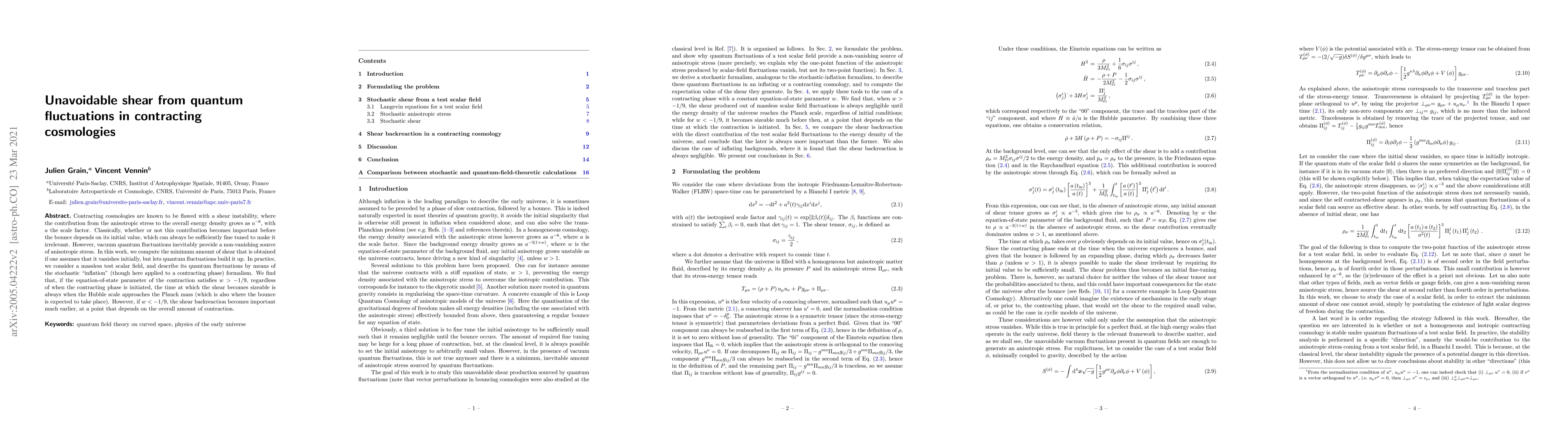 Contracting cosmologies are known to be flawed with a shear instability, where the contribution from the anisotropic stress to the overall energy density grows as $a^{-6}$, with $a$ the scale factor. Classically, whether or not this contribution becomes important before the bounce depends on its initial value, which can always be sufficiently fine tuned to make it irrelevant. However, vacuum quantum fluctuations inevitably provide a non-vanishing source of anisotropic stress. In this work, we compute the minimum amount of shear that is obtained if one assumes that it vanishes initially, but lets quantum fluctuations build it up. In practice, we consider a massless test scalar field, and describe its quantum fluctuations by means of the stochastic "inflation" (though here applied to a contracting phase) formalism. We find that, if the equation-of-state parameter of the contraction satisfies $w>-1/9$, regardless of when the contracting phase is initiated, the time at which the shear becomes sizeable is always when the Hubble scale approaches the Planck mass (which is also where the bounce is expected to take place). However, if $w<-1/9$, the shear backreaction becomes important much earlier, at a point that depends on the overall amount of contraction.