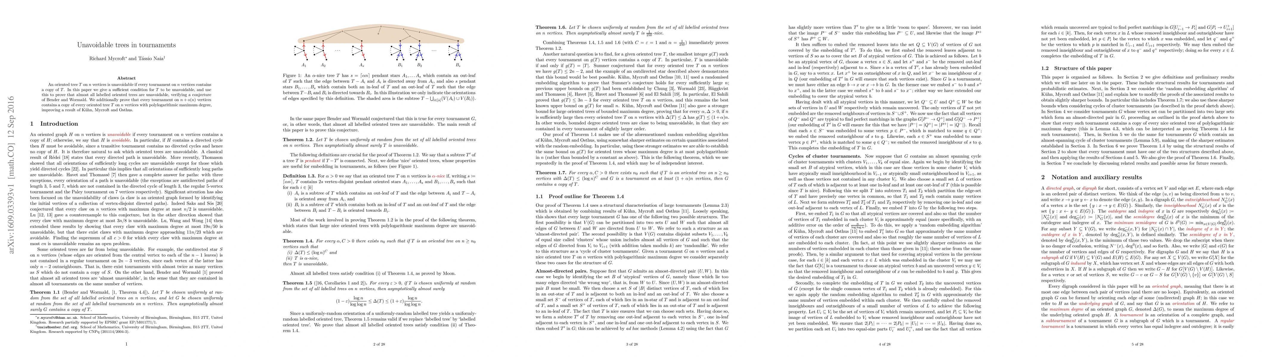 Researchers proved that almost all labelled oriented trees on n vertices are unavoidable in tournaments, improving a related result, and found a sufficient condition for this to hold.