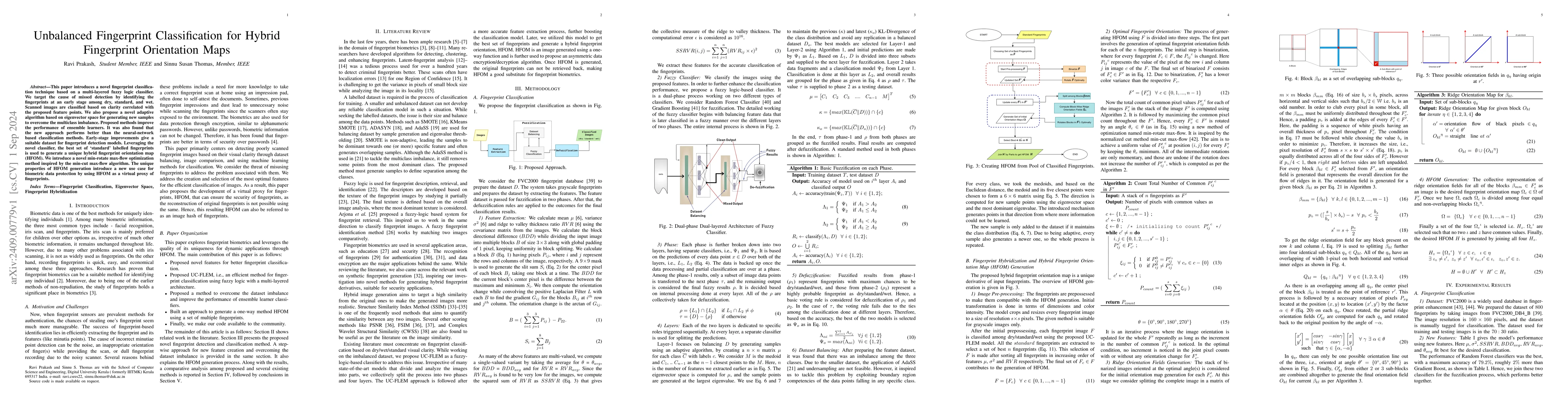 This paper introduces a novel fingerprint classification technique based on a multi-layered fuzzy logic classifier. We target the cause of missed detection by identifying the fingerprints at an early stage among dry, standard, and wet. Scanned images are classified based on clarity correlated with the proposed feature points. We also propose a novel adaptive algorithm based on eigenvector space for generating new samples to overcome the multiclass imbalance. Proposed methods improve the performance of ensemble learners. It was also found that the new approach performs better than the neural-network based classification methods. Early-stage improvements give a suitable dataset for fingerprint detection models. Leveraging the novel classifier, the best set of `standard' labelled fingerprints is used to generate a unique hybrid fingerprint orientation map (HFOM). We introduce a novel min-rotate max-flow optimization method inspired by the min-cut max-flow algorithm. The unique properties of HFOM generation introduce a new use case for biometric data protection by using HFOM as a virtual proxy of fingerprints.