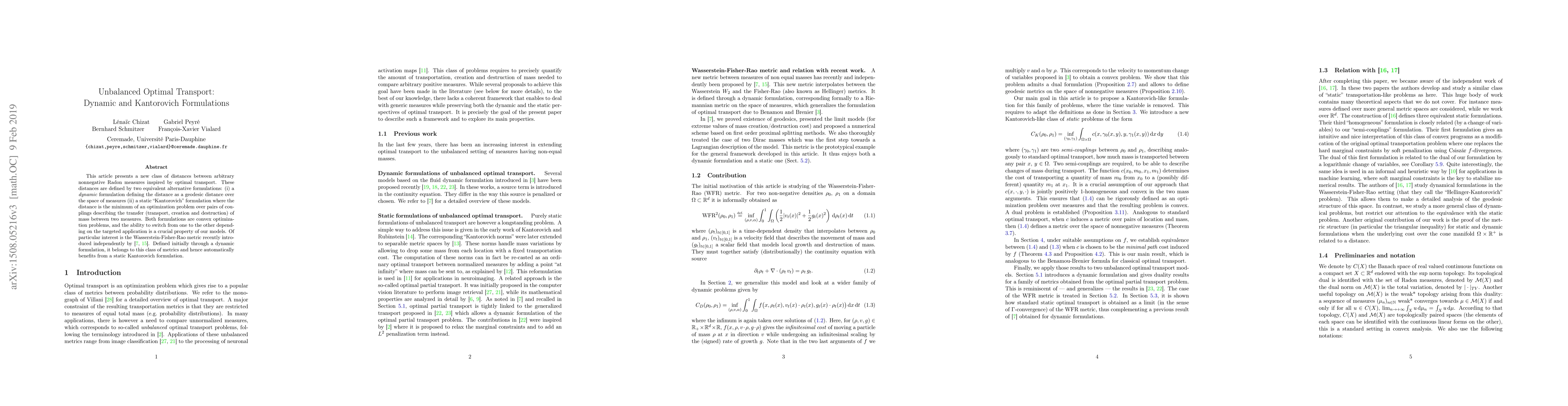 Researchers introduce a new class of distances between nonnegative measures inspired by optimal transport, offering dynamic and static formulations for convex optimization problems.