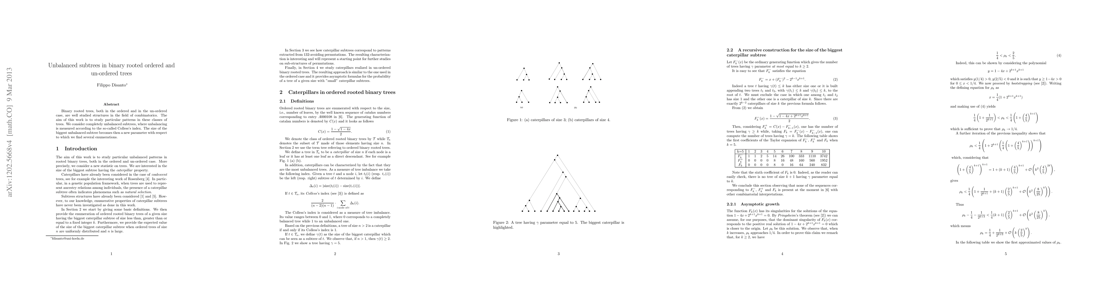 This research investigates the occurrence and enumeration of completely unbalanced subtrees in binary rooted ordered and unordered trees, using Colless's index to measure unbalancing and focusing on the size of the largest unbalanced subtree as a new parameter.