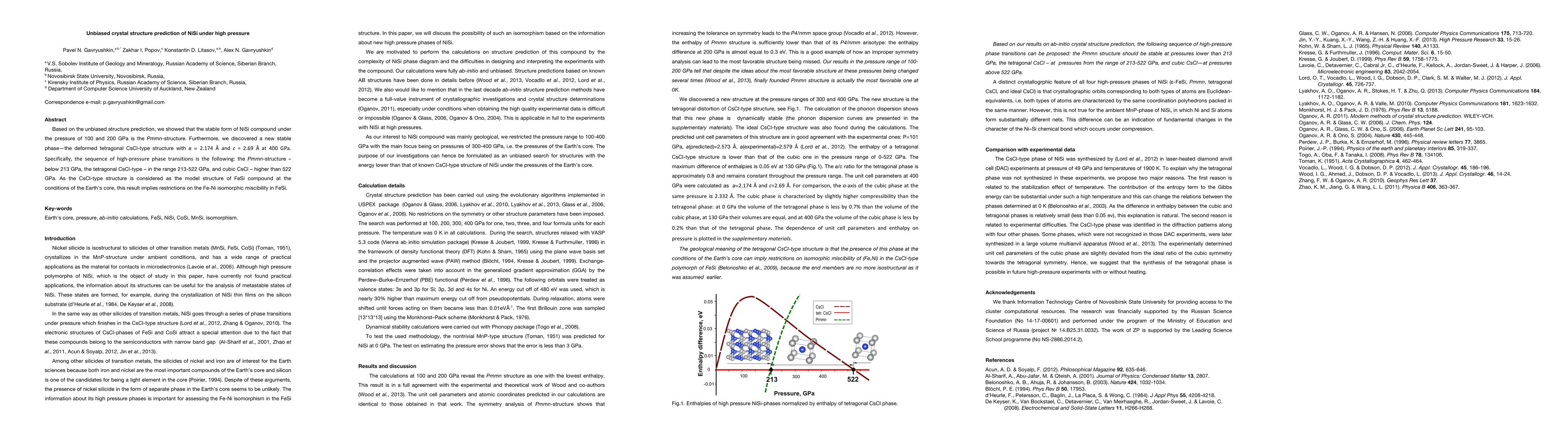Researchers found a new stable phase of NiSi under high pressure, with phase transitions occurring between 213-522 GPa, and implications for the miscibility of Fe-Ni in FeSi.