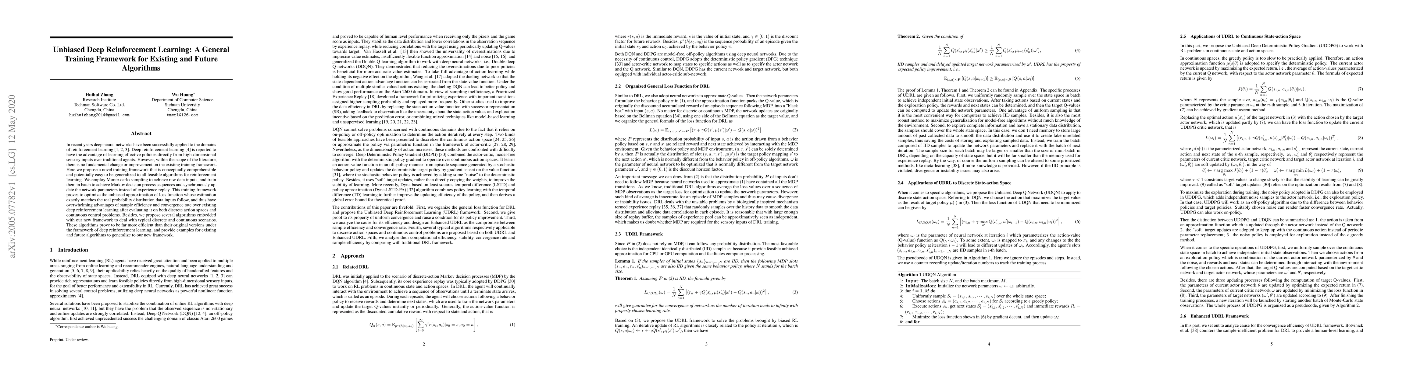 This research paper proposes a novel training framework for deep reinforcement learning that optimizes sample efficiency and convergence rate, outperforming existing methods in both discrete action spaces and continuous control problems.