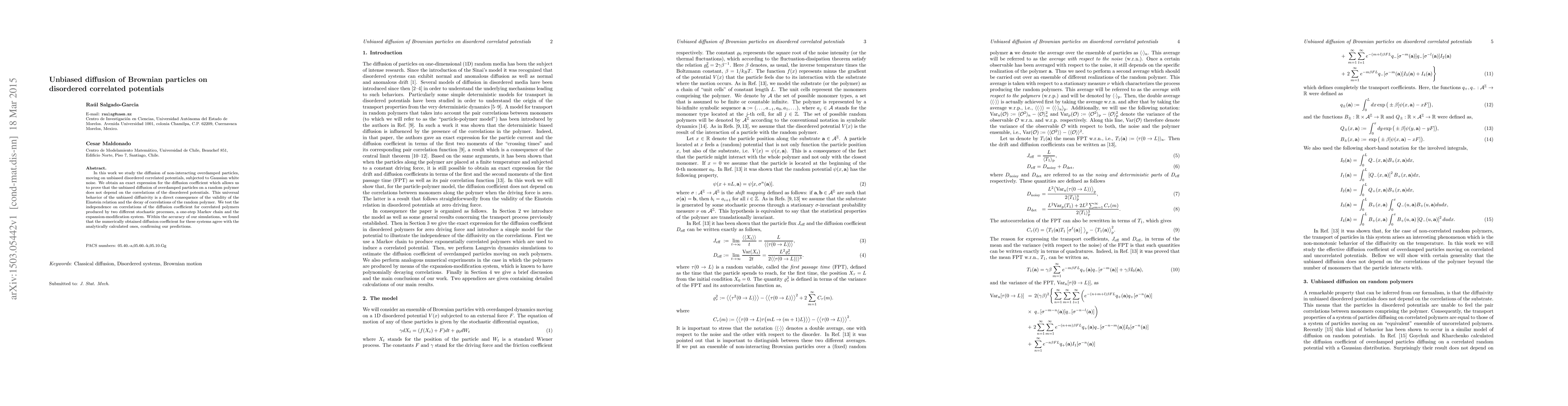This paper explores the diffusion of Brownian particles on disordered correlated potentials, deriving an exact expression for the diffusion coefficient. It demonstrates that the unbiased diffusion is independent of potential correlations, a result confirmed by simulations for polymers generated by different stochastic processes.