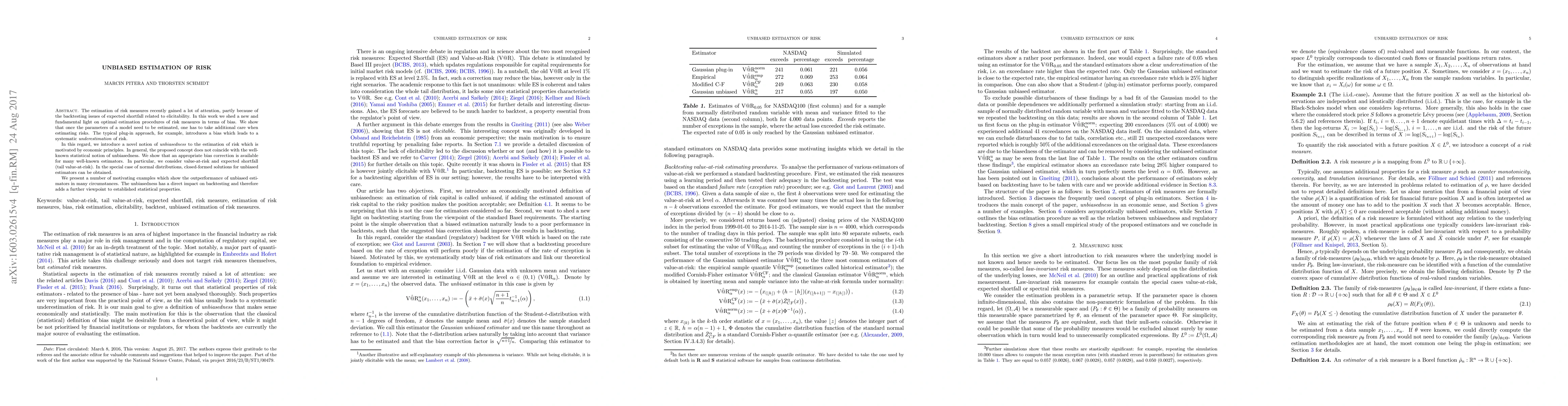 The estimation of risk measures recently gained a lot of attention, partly because of the backtesting issues of expected shortfall related to elicitability. In this work we shed a new and fundamental light on optimal estimation procedures of risk measures in terms of bias. We show that once the parameters of a model need to be estimated, one has to take additional care when estimating risks. The typical plug-in approach, for example, introduces a bias which leads to a systematic underestimation of risk. In this regard, we introduce a novel notion of unbiasedness to the estimation of risk which is motivated by economic principles. In general, the proposed concept does not coincide with the well-known statistical notion of unbiasedness. We show that an appropriate bias correction is available for many well-known estimators. In particular, we consider value-at-risk and expected shortfall (tail value-at-risk). In the special case of normal distributions, closed-formed solutions for unbiased estimators can be obtained. We present a number of motivating examples which show the outperformance of unbiased estimators in many circumstances. The unbiasedness has a direct impact on backtesting and therefore adds a further viewpoint to established statistical properties.