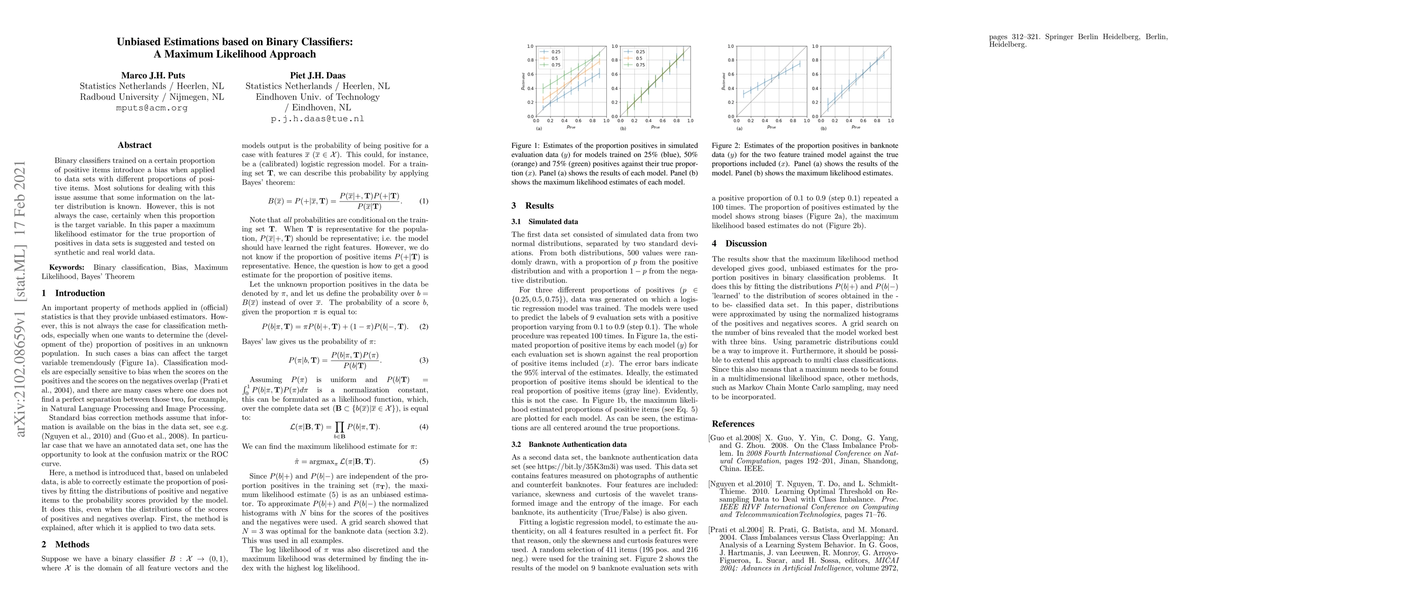 Binary classifiers trained on a certain proportion of positive items introduce a bias when applied to data sets with different proportions of positive items. Most solutions for dealing with this issue assume that some information on the latter distribution is known. However, this is not always the case, certainly when this proportion is the target variable. In this paper a maximum likelihood estimator for the true proportion of positives in data sets is suggested and tested on synthetic and real world data.