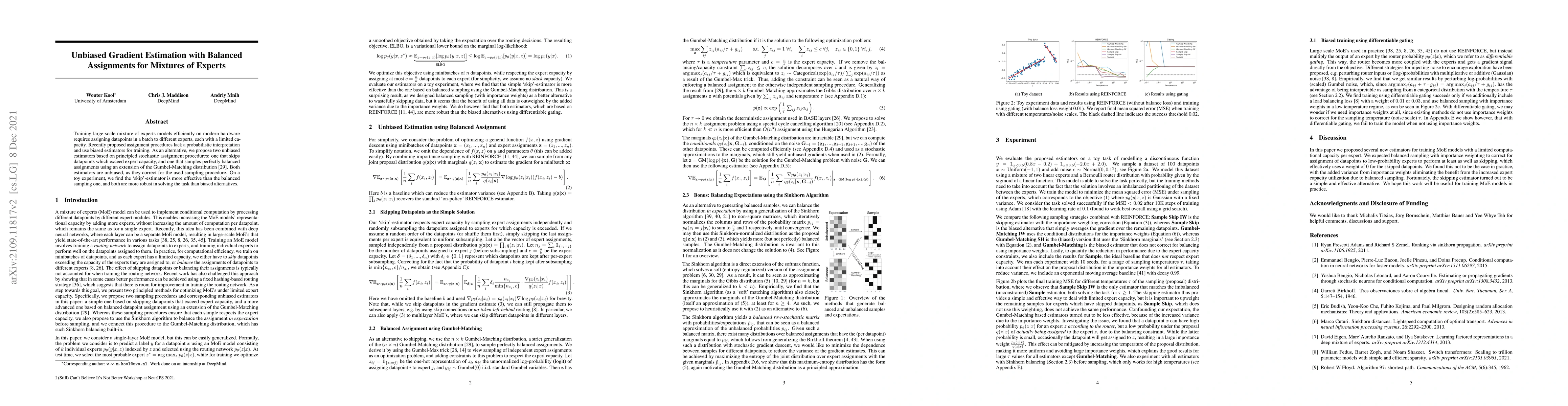Researchers propose two unbiased estimators for training large-scale mixture of experts models on modern hardware, achieving more effective and robust results than biased alternatives.
