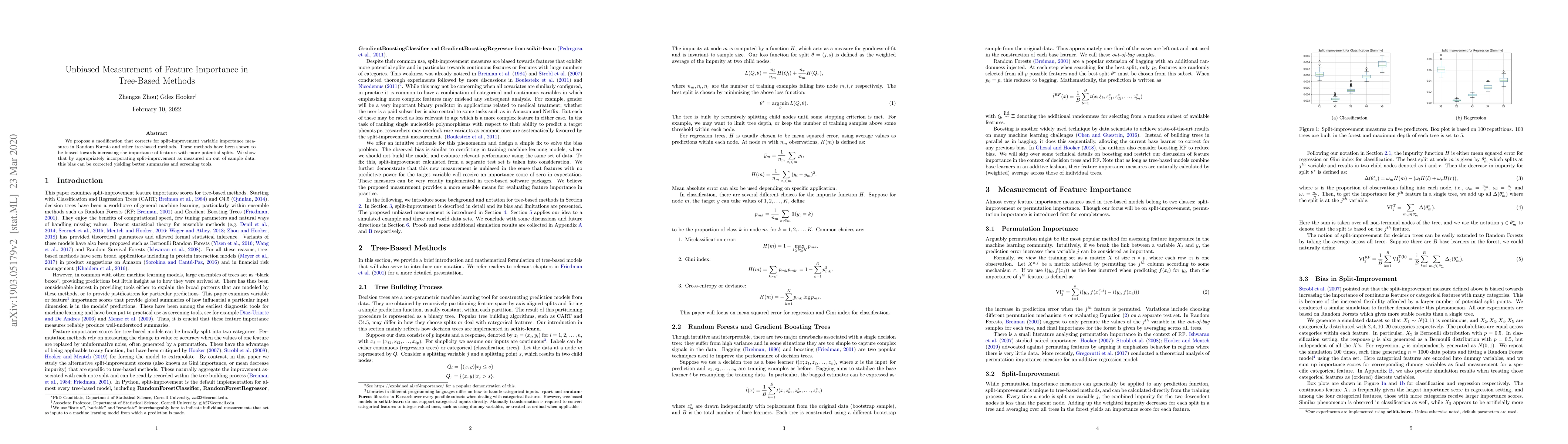 This paper proposes a method to correct the bias in feature importance measures in tree-based methods, such as Random Forests, by incorporating split-improvement on out-of-sample data, leading to more accurate and unbiased assessments of feature significance.