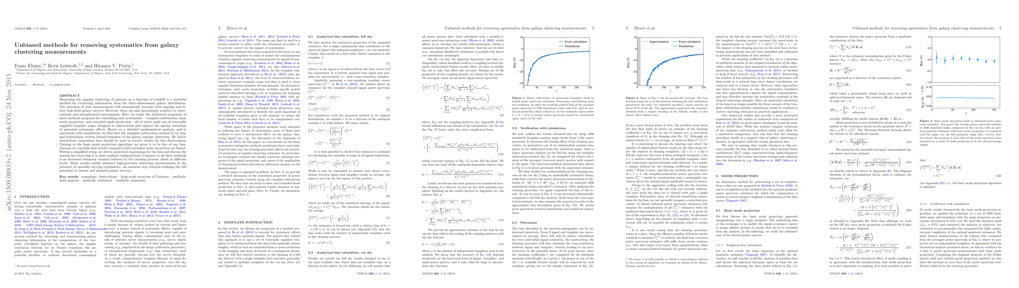 This paper evaluates three methods for removing systematics from galaxy clustering measurements, finding that template subtraction is biased and proposes corrections, while basic mode projection is unbiased. It also identifies bias in extended mode projection and discusses correction options, highlighting the increased variance in all methods.