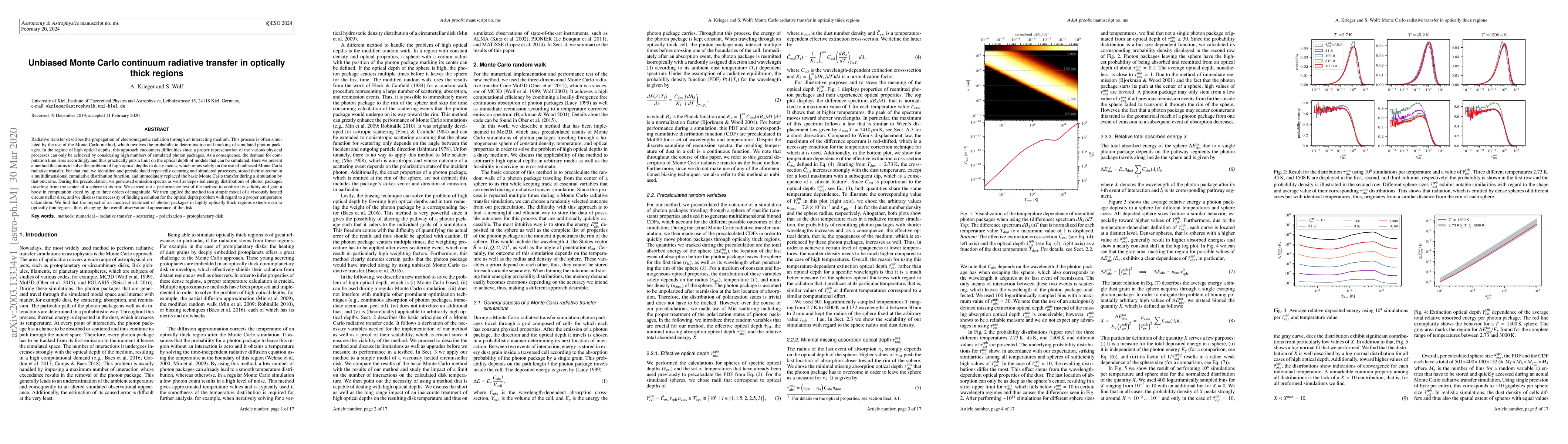 This paper introduces an unbiased Monte Carlo method to efficiently simulate radiative transfer in optically thick regions, addressing the computational challenge of high optical depths. The method precalculates and stores outcomes of repeated processes in a multidimensional distribution, significantly improving computation speed and enabling accurate temperature calculations in models like circumstellar disks.