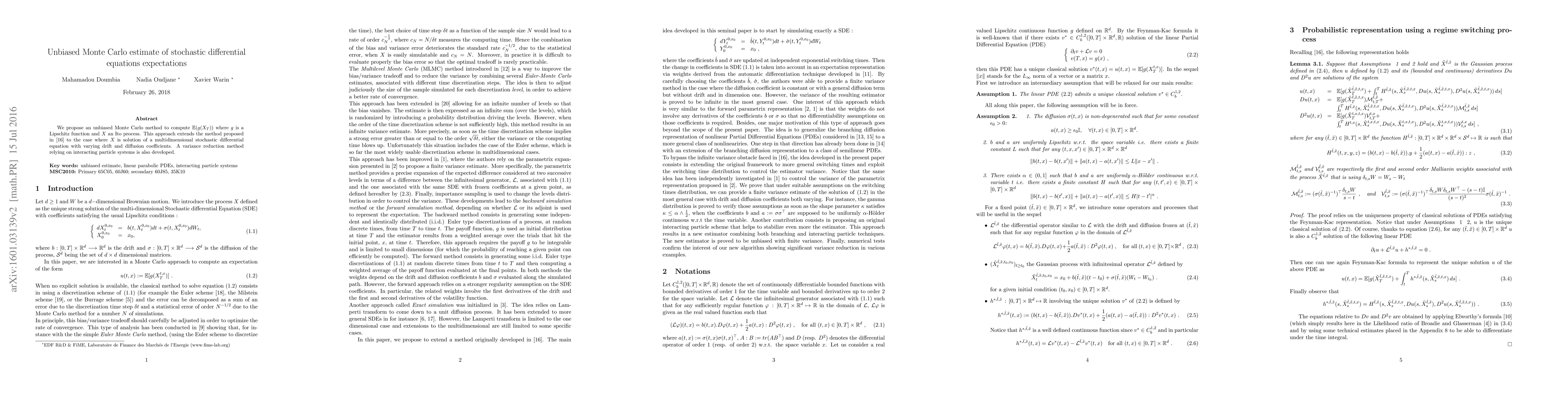 This paper develops a Monte Carlo method to estimate expectations of stochastic differential equations (SDEs) with varying coefficients, improving upon previous methods in multidimensionality and incorporating variance reduction techniques.