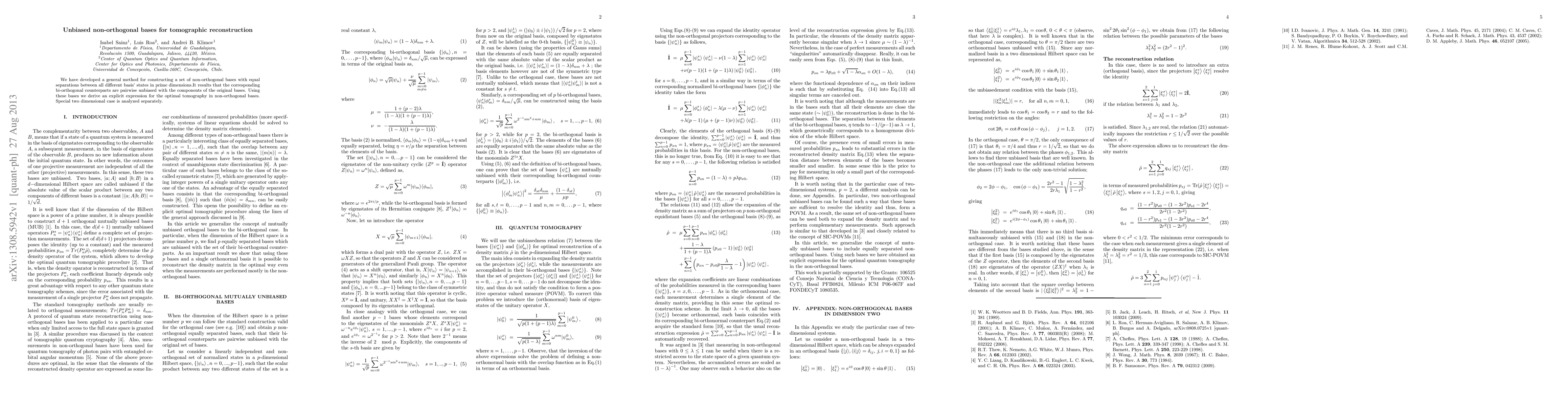 This paper presents a method for creating non-orthogonal bases with equal separations in prime dimensions, ensuring that their bi-orthogonal counterparts are pairwise unbiased. It also provides an explicit expression for optimal tomography using these bases, with a special focus on the two-dimensional case.