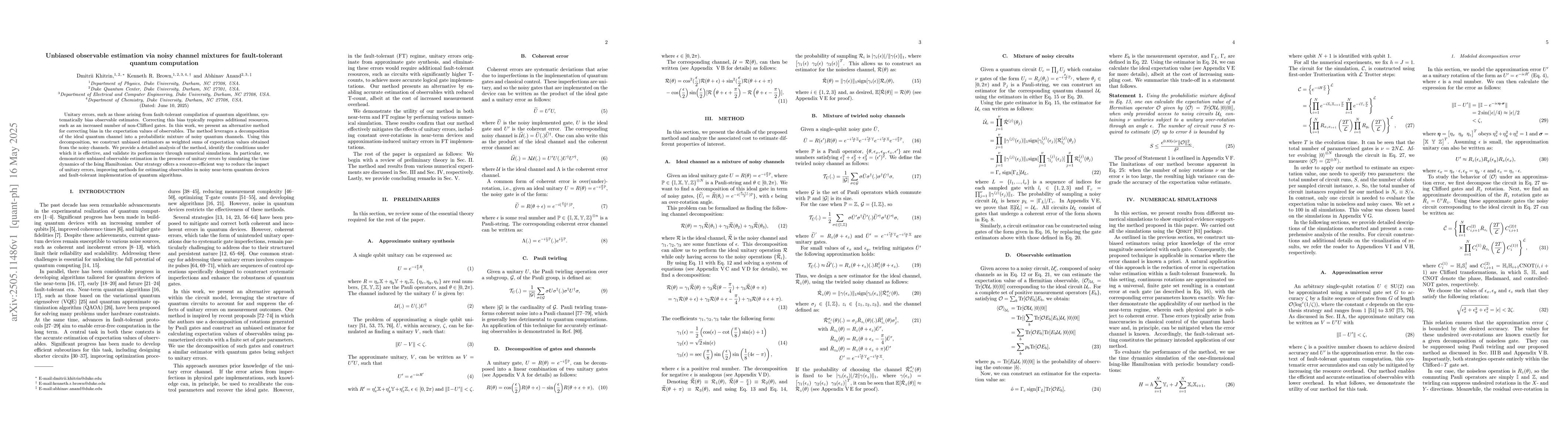 Researchers propose a method to correct bias in observable estimates for fault-tolerant quantum computation using noisy channel mixtures, offering a resource-efficient way to improve accuracy in near-term devices.