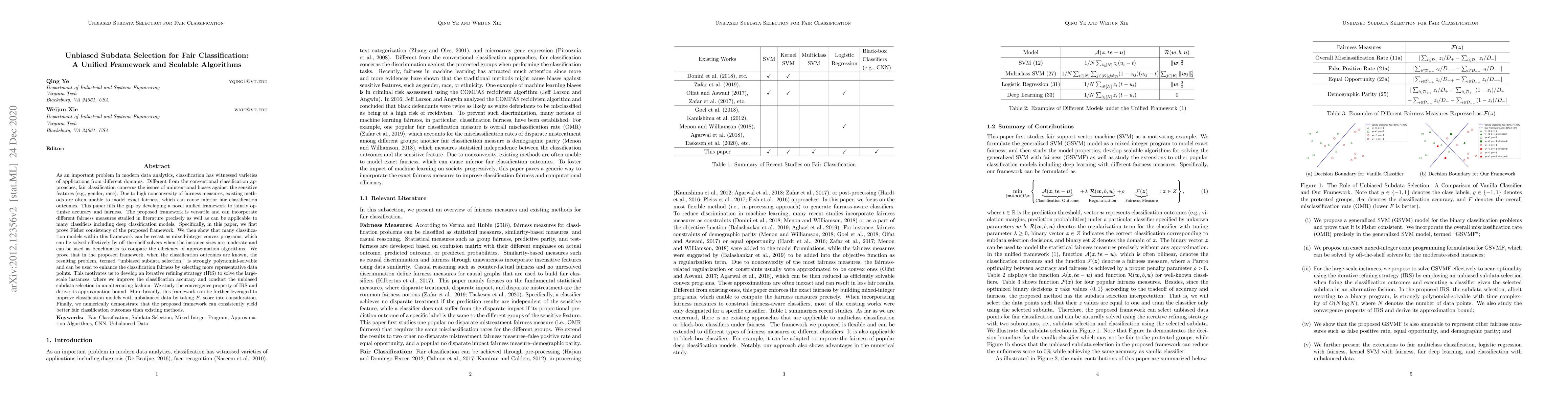 This paper introduces a novel unified framework for fair classification that jointly optimizes accuracy and fairness, addressing the issue of unintentional biases against sensitive features. The framework can incorporate various fairness measures and is scalable, employing an iterative refining strategy to handle large-scale instances effectively while maintaining strong polynomial-solvability for unbiased subdata selection.