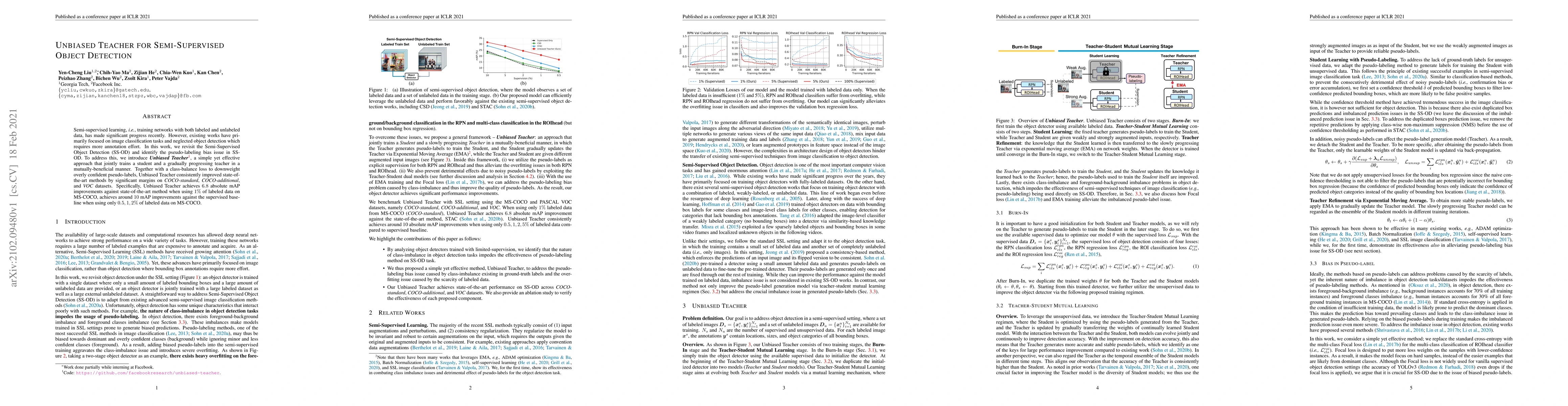 This paper proposes Unbiased Teacher, a novel approach for Semi-Supervised Object Detection (SS-OD) that addresses pseudo-labeling bias. It trains a student and a teacher network collaboratively, improving detection performance significantly on COCO and VOC datasets, achieving notable mAP improvements even with limited labeled data.