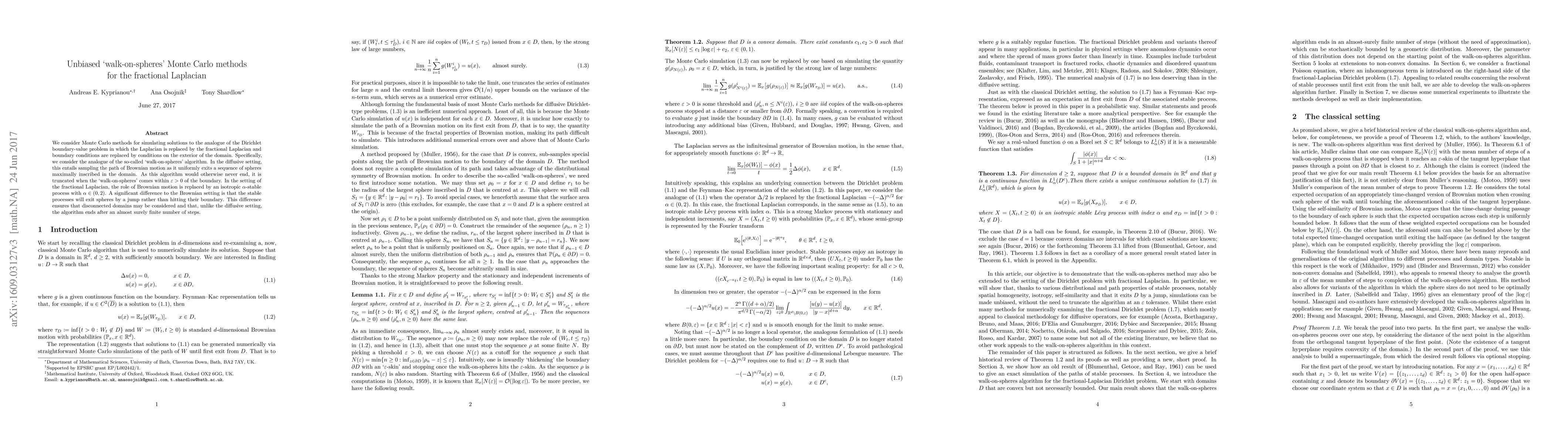 This paper introduces an unbiased Monte Carlo method for simulating solutions to the fractional Laplacian problem, using a modified version of the 'walk-on-spheres' algorithm that ensures almost surely finite steps.