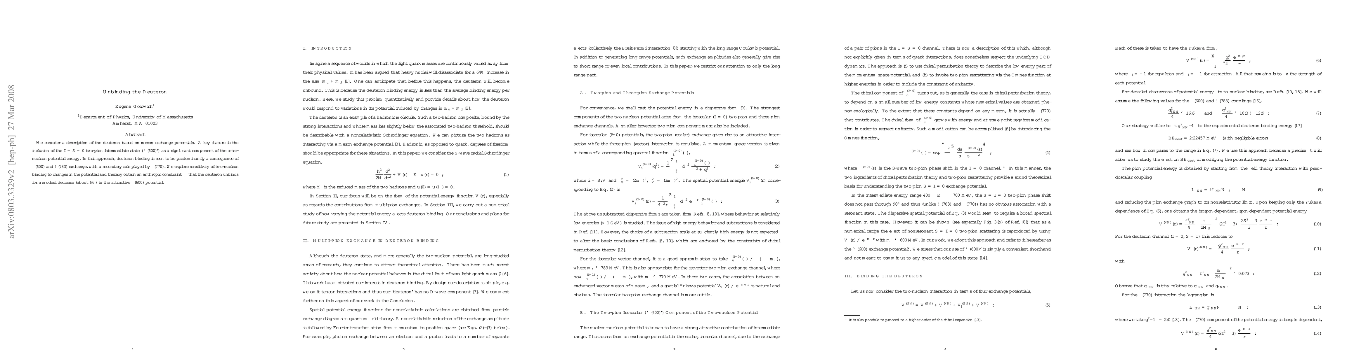 The paper presents a novel approach to understanding deuteron binding by incorporating the sigma(600) and omega(783) meson exchanges, providing a theoretical basis for the two-pion S=I=0 exchange potential.