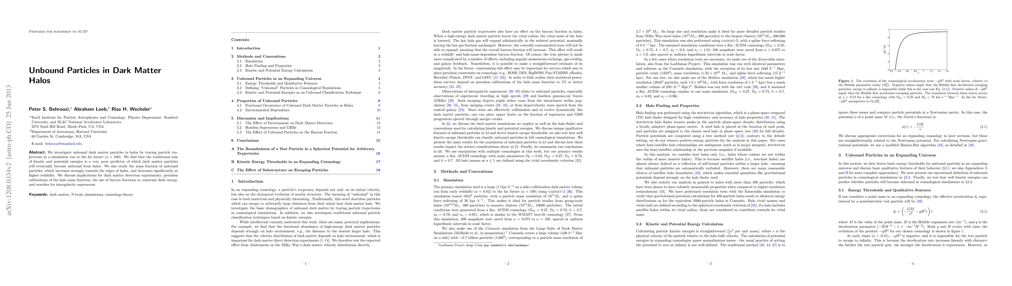 This study examines unbound dark matter particles in halos through long-term simulations, revealing that traditional energy methods poorly predict particle escape. The mass fraction of unbound particles rises near halo edges and diminishes at higher redshifts, impacting dark matter detection and cosmological models.