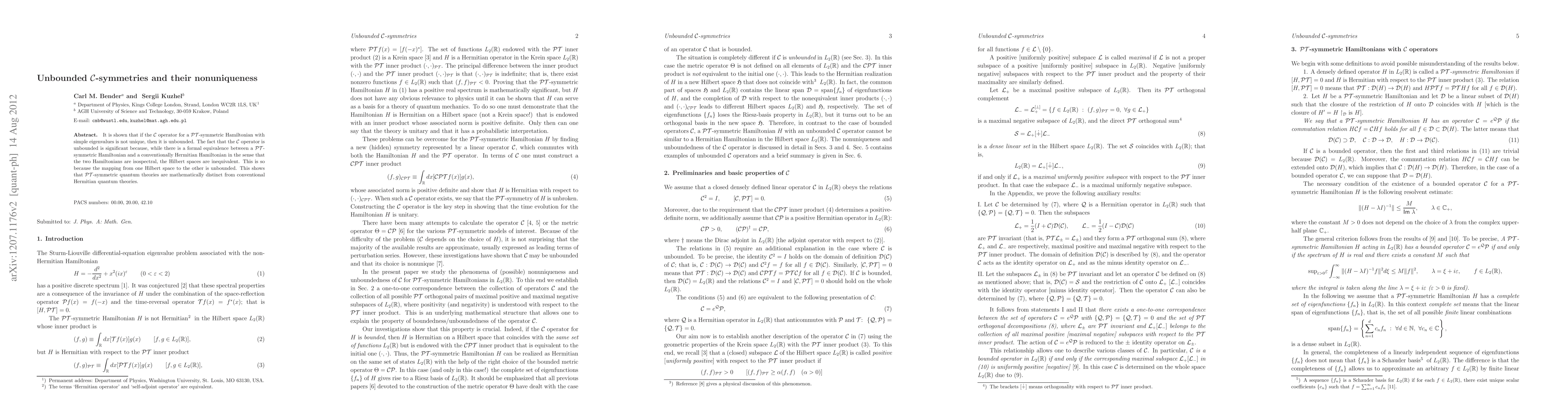 It is shown that if the C operator for a PT-symmetric Hamiltonian with simple eigenvalues is not unique, then it is unbounded. Apart from the special cases of finite-matrix Hamiltonians and Hamiltonians generated by differential expressions with PT-symmetric point interactions, the usual situation is that the C operator is unbounded. The fact that the C operator is unbounded is significant because, while there is a formal equivalence between a PT-symmetric Hamiltonian and a conventionally Hermitian Hamiltonian in the sense that the two Hamiltonians are isospectral, the Hilbert spaces are inequivalent. This is so because the mapping from one Hilbert space to the other is unbounded. This shows that PT-symmetric quantum theories are mathematically distinct from conventional Hermitian quantum theories.