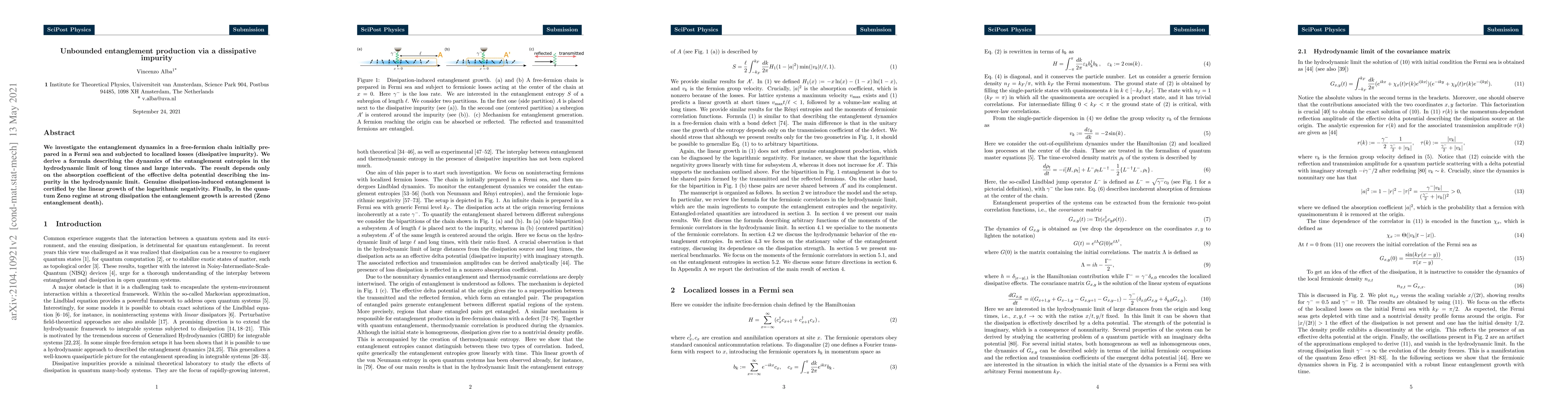 Researchers created a model showing that a dissipative impurity can produce unbounded entanglement in a free-fermion chain, with the entanglement growing exponentially at strong dissipation rates.