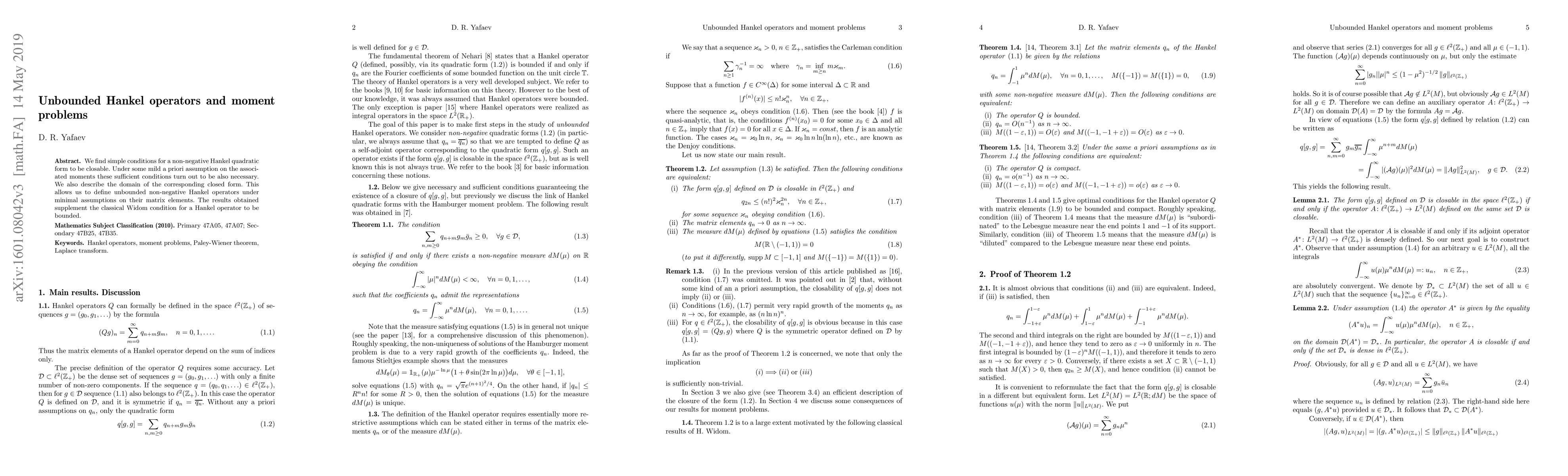 This paper provides conditions for non-negative Hankel quadratic forms to be closable and necessary under mild assumptions on moments, describing the domain of the closed form and defining unbounded Hankel operators with minimal assumptions. The findings complement the classical Widom condition for bounded Hankel operators.
