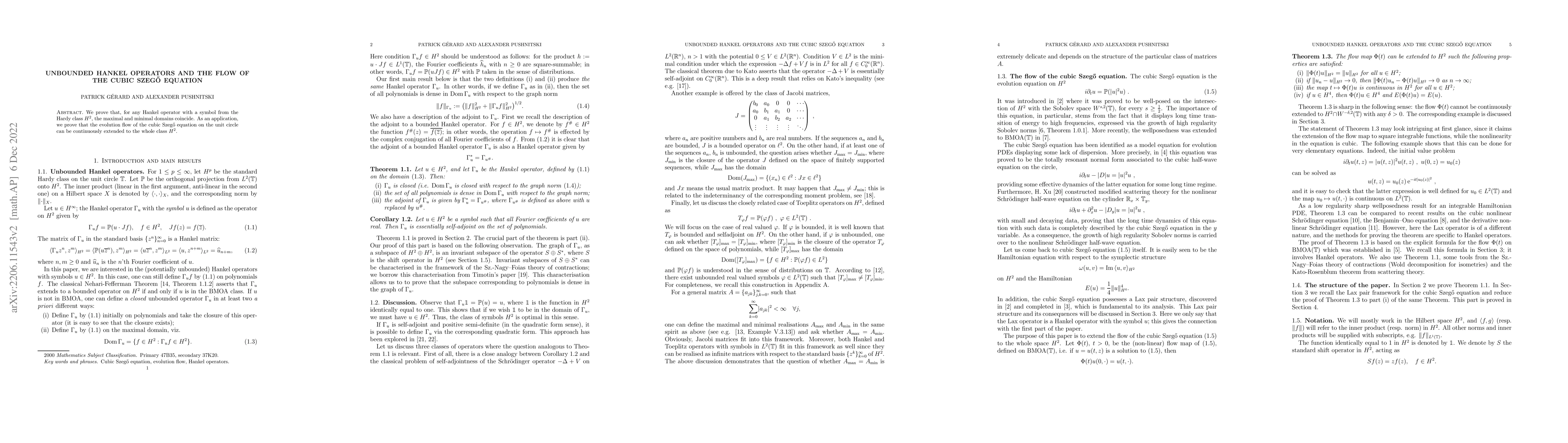 This paper demonstrates that Hankel operators with symbols from the Hardy class $H^2$ have maximal and minimal domains that coincide. Consequently, it shows that the evolution flow of the cubic Szegő equation on the unit circle can be continuously extended to the entire $H^2$ class.