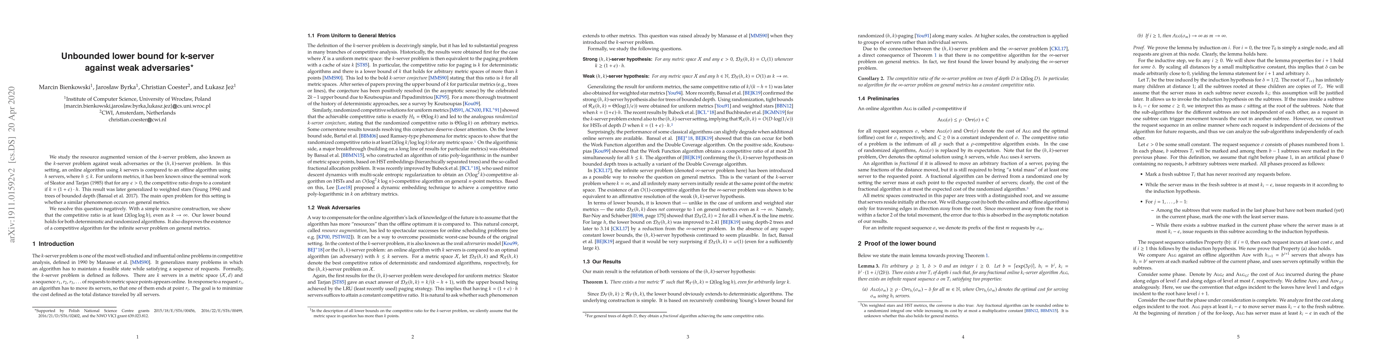 This paper demonstrates that for the $k$-server problem against weak adversaries, the competitive ratio is at least $\Omega(\log \log h)$ regardless of the number of servers $k$, disproving the existence of a competitive algorithm for infinite servers on general metrics.