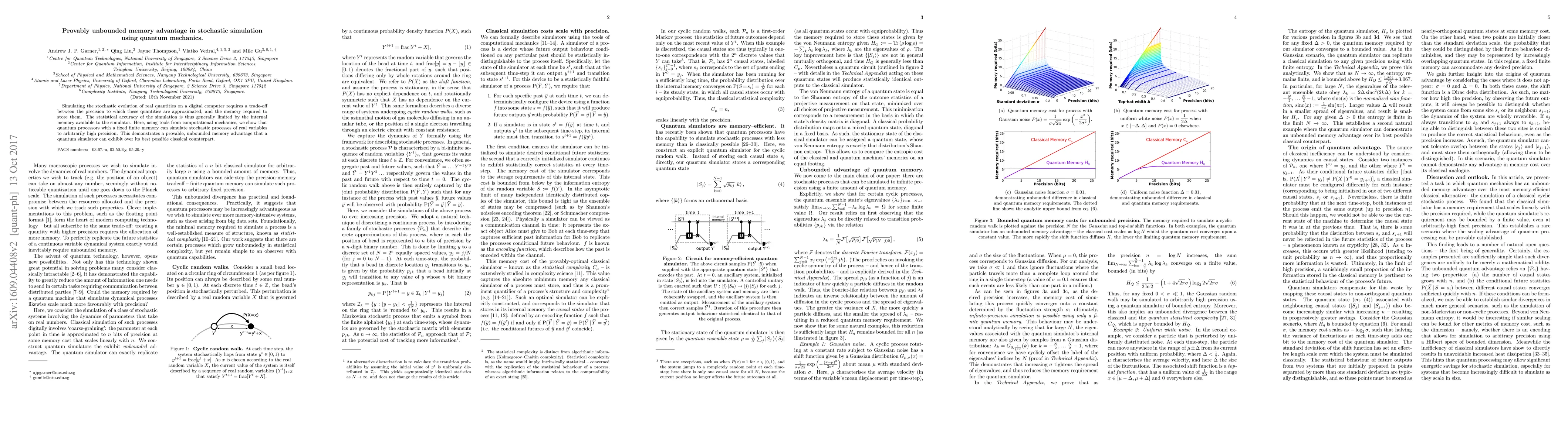 This paper demonstrates that quantum processors can simulate stochastic processes with arbitrarily high precision despite having a fixed finite memory, showcasing a provable unbounded memory advantage over classical simulators. This breakthrough leverages quantum mechanics to overcome the traditional trade-off between precision and memory in digital simulations.