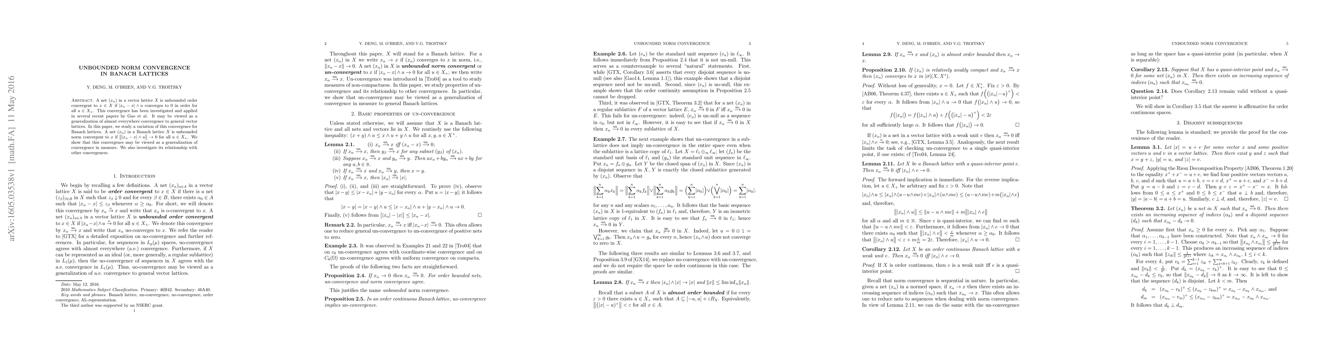 Title: Unbounded Norm Convergence in Banach Lattices Summary: This paper explores a new form of unbounded norm convergence in Banach lattices, showing it generalizes convergence in measure and examining its relation to other types of convergence.