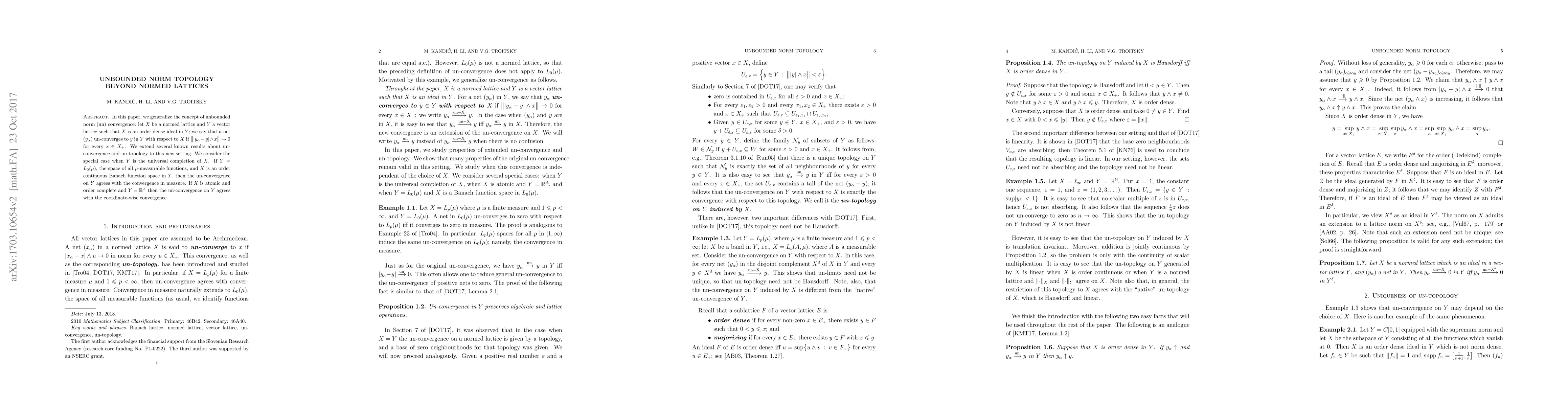 In this paper, we generalize the concept of unbounded norm (un) convergence: let $X$ be a normed lattice and $Y$ a vector lattice such that $X$ is an order dense ideal in $Y$; we say that a net $(y_\alpha)$ un-converges to $y$ in $Y$ with respect to $X$ if $\Bigl\lVert\lvert y_\alpha-y\rvert \wedge x\Bigr\rVert\to 0$ for every $x\in X_+$. We extend several known results about un-convergence and un-topology to this new setting. We consider the special case when $Y$ is the universal completion of $X$. If $Y=L_0(\mu)$, the space of all $\mu$-measurable functions, and $X$ is an order continuous Banach function space in $Y$, then the un-convergence on $Y$ agrees with the convergence in measure. If $X$ is atomic and order complete and $Y=\mathbb R^A$ then the un-convergence on $Y$ agrees with the coordinate-wise convergence.