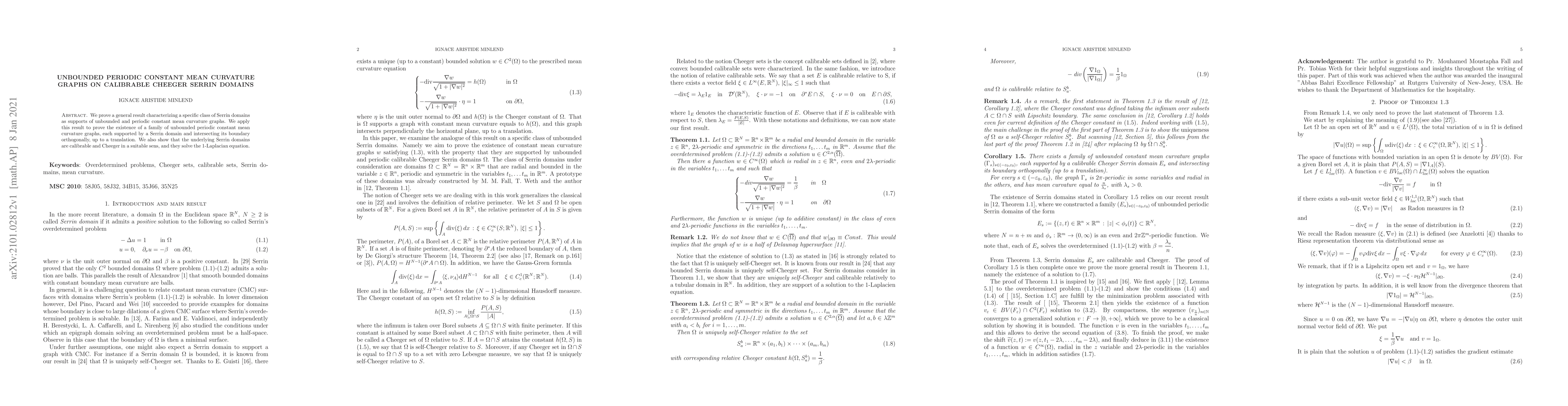 The paper presents a general result characterizing a specific class of Serrin domains as supports of unbounded, periodic constant mean curvature graphs. It also demonstrates the existence of a family of such graphs, intersecting their boundaries orthogonally, and shows that these Serrin domains are calibrable and Cheeger, solving the 1-Laplacian equation.