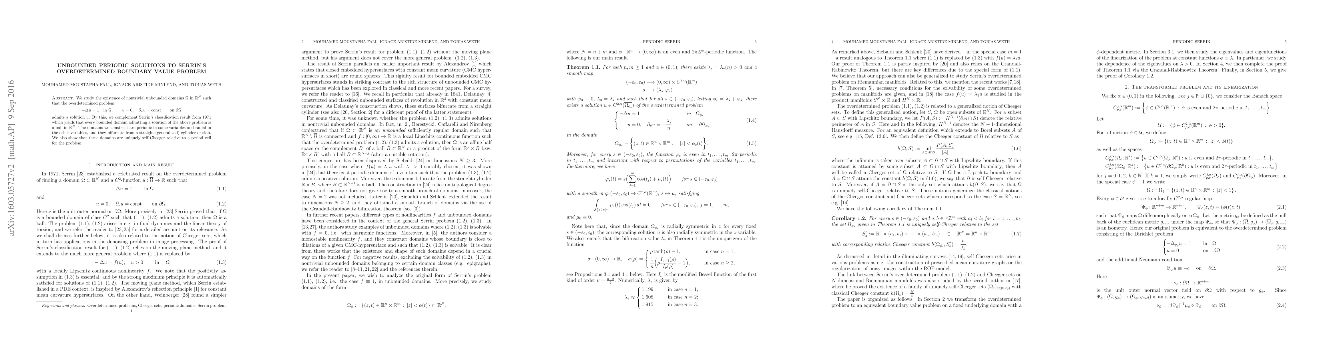 We study the existence of nontrivial unbounded domains $\Omega$ in $\mathbb{R}^N$ such that the overdetermined problem $$ -\Delta u = 1 \quad \text{in $\Omega$}, \qquad u=0, \quad \partial_\nu u=\textrm{const} \qquad \text{on $\partial \Omega$} $$ admits a solution $u$. By this, we complement Serrin's classification result from 1971 which yields that every bounded domain admitting a solution of the above problem is a ball in $\mathbb{R}^N$. The domains we construct are periodic in some variables and radial in the other variables, and they bifurcate from a straight (generalized) cylinder or slab. We also show that these domains are uniquely self Cheeger relative to a period cell for the problem.