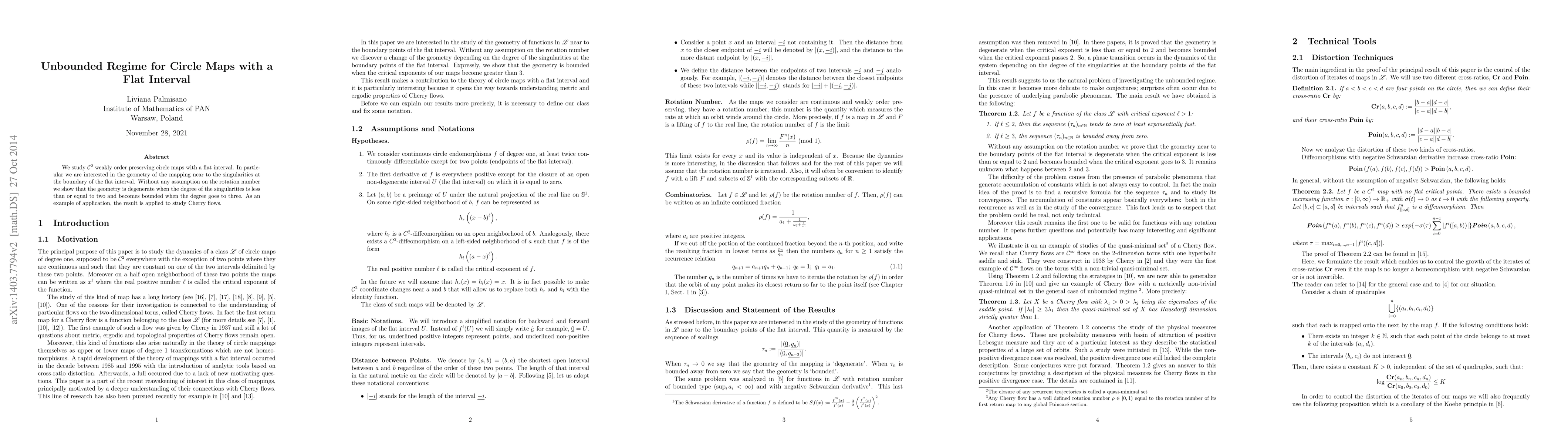 This paper investigates C^2 weakly order preserving circle maps with a flat interval, focusing on the geometry near singularities. It demonstrates that the geometry is degenerate for singularities of degree ≤2 and bounded for degree 3, with no assumptions on the rotation number. An application is provided to study Cherry flows.